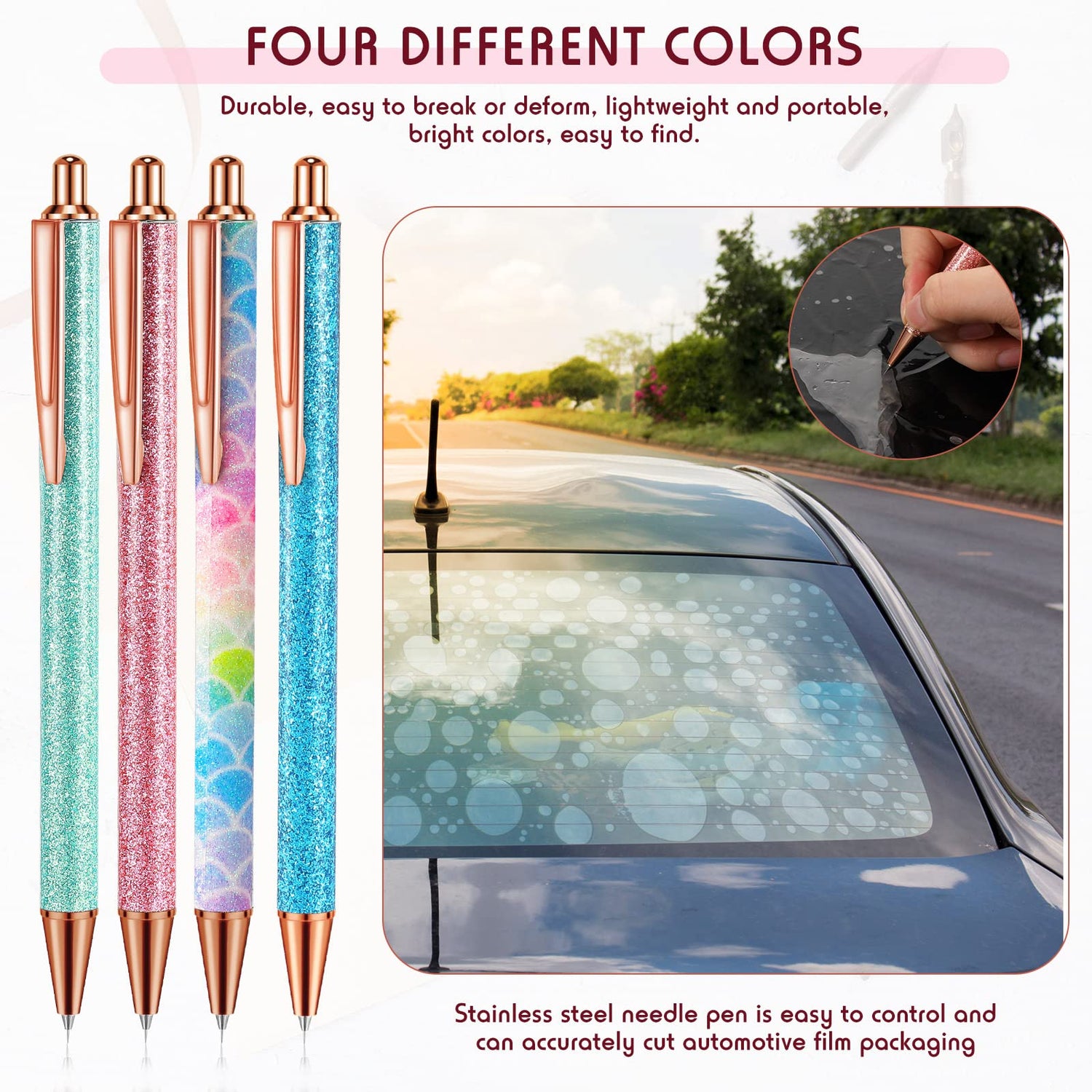 Epakh Writing Instrument Stainless Steel Weeding Pen, 4 Piece, Retractable, Air Release, Bubble Removal, DIY Craft Project, Bright Color