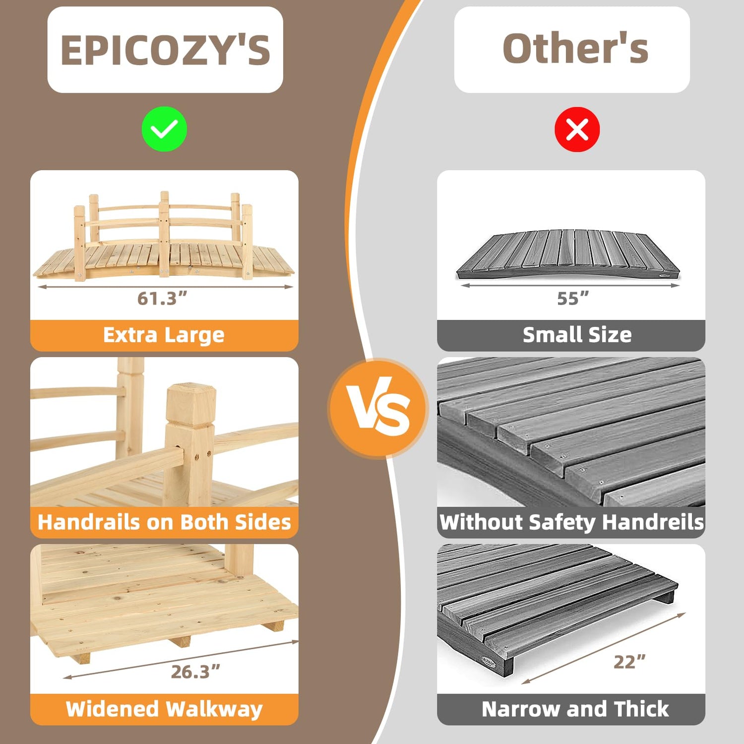 EPICOZY Wooden Garden Bridge Classic Wooden Arch Footbridge with Safety Railings, 530 lbs Capacity, Decorative Pond Bridge Landscaping for Outdoor Garden Yard Backyard Creek Farm, Natural