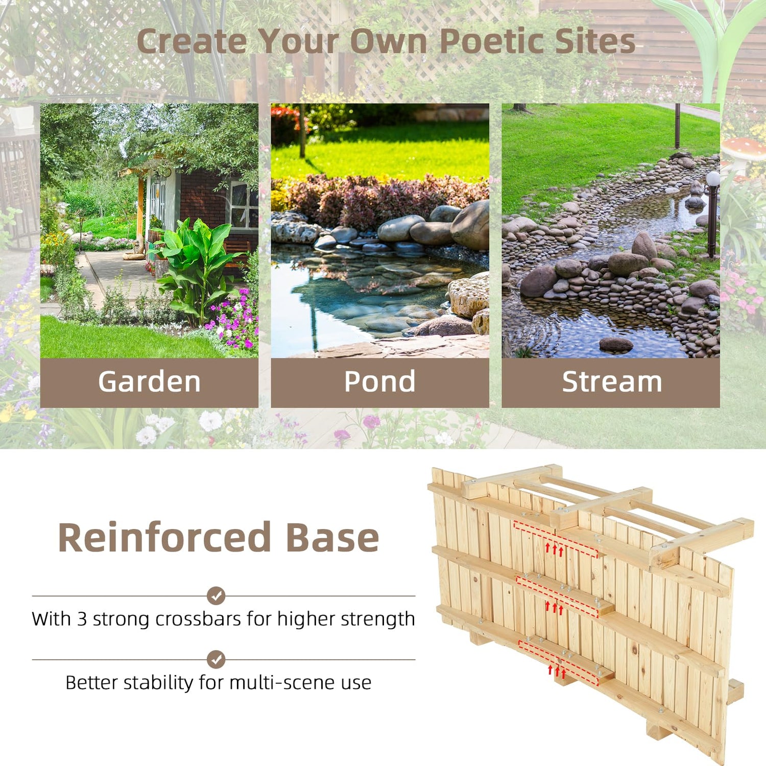 - 【Versatile Outdoor Garden Bridge】This versatile wooden bridge can be used not only as a landscape decoration, but you can also place it over a creek, stream, small rip-raps or channels to create a unique passage for yourself and your favorite pets, or place it on top of the fish pond and then feed the small fish. The decorative wood bridge is a great and charming addition to garden, backyard, courtyard, patio, farm!