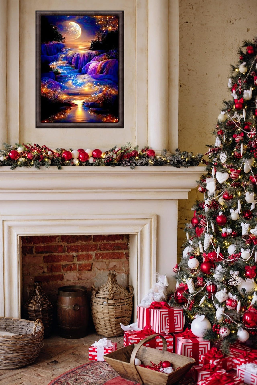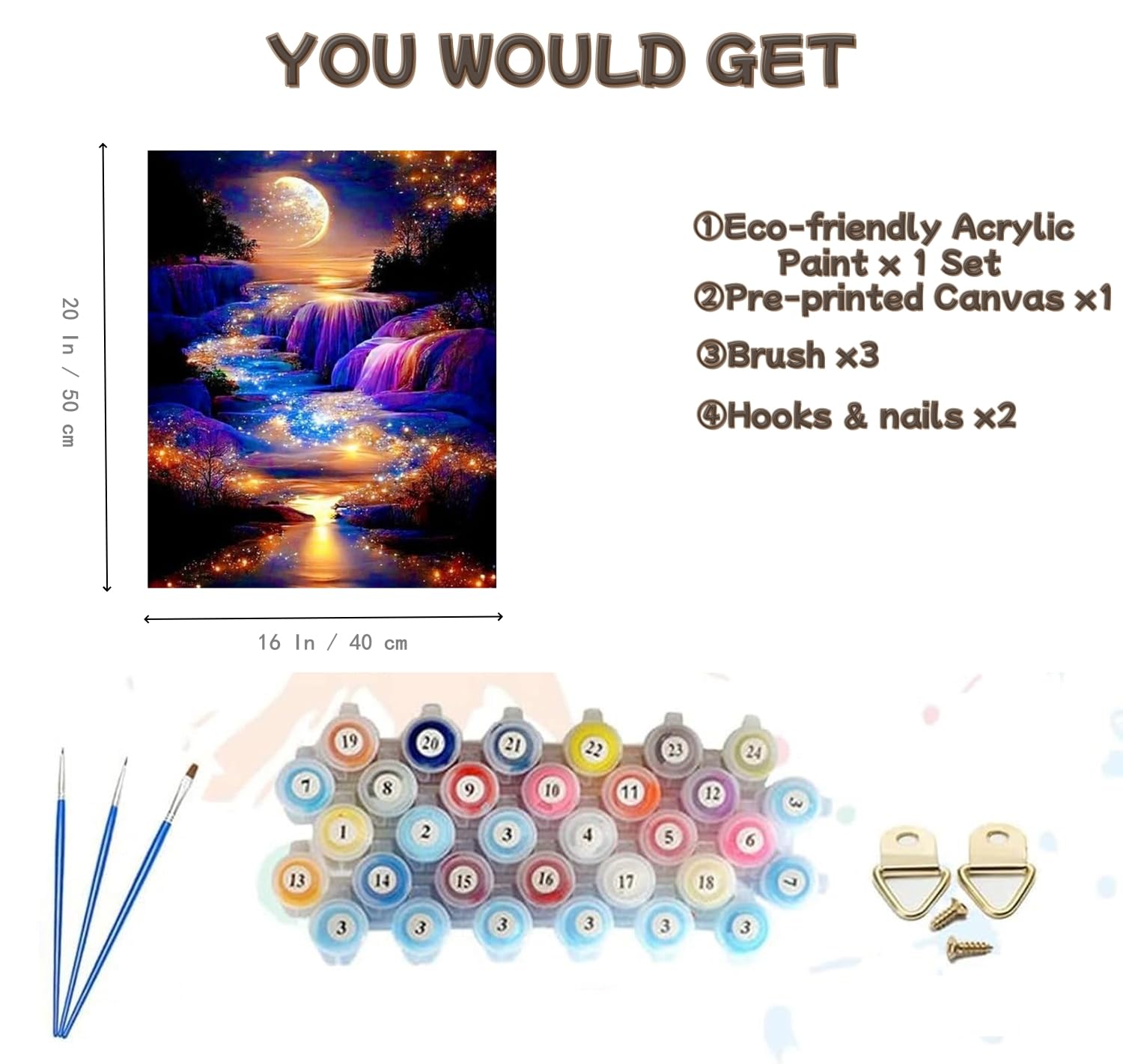 EPLUUM Waterfall Paint by Numbers Kit for Adults Canvas Moon Adult Paint by Numbers for Adults Mountains Painting by Numbers for Adult Paint by Number for Gift Home Wall Decor (16x20 inch)
