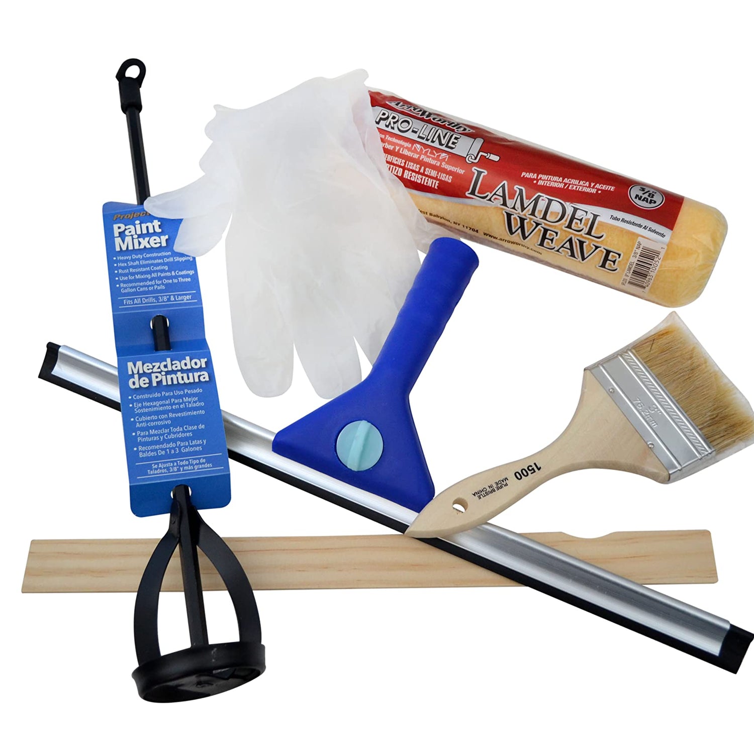 Epoxy-Coat’s garage floor coating is the most durable and longest lasting 100% solids Cycloaliphatic epoxy floor coating kit on the market today. Epoxy-Coat 100% solids floor coating kit is ideal for garage, basement, patio, industrial or commercial concrete or wood floor coating. If you wish to compare the thickness after dried application between Epoxy-Coat and normal epoxies you would need over 2.5X the gallons to equal exactly the thickness of 1 gallon of Epoxy-Coat Floor Coating. You can do it yourself in an afternoon and get a beautiful finish on your garage floor, basement, indoor patio, wood floor and even commercial floor coating applications. In addition to your garage floor coating application, Epoxy-Coat can be used in any room in your house safely, and is ideal for children’s play rooms, bathrooms, basements, laundry rooms, kitchens and mud rooms. Epoxy-Coat can be applied in a single coat with the thickness of 5+ coats of paint with no odor and a dry time of 12 hours. Epoxy-Coat is perfect for rough and pitted concrete floors due to the self-leveling nature and 100% solids non-shrinking formula. A single coat of Epoxy-Coat will patch and coat all in one application. Epoxy-Coat floor coating is the most durable and longest lasting epoxy coating kit of its kind, and it outperforms all other national brands. Kit Includes: 2 gallons Epoxy-Coat Part A, 1 gallon of Epoxy-Coat Part B, .25lbs of Aluminum Oxide Non-Skid, 9oz Prep Solution, 2lbs of flakes, Included Application Tools (Small Tool Kit): (1) 3" Brush, (1) 9" Roller Cover (3/8" Nap), (1) Squeegee, (1) 16" Mechanical Mixer, (1) Pair of Vinyl Gloves, (1) 16" Mechanical Mixer, (1) Pair of Vinyl Gloves, (1) Mixing Sticks