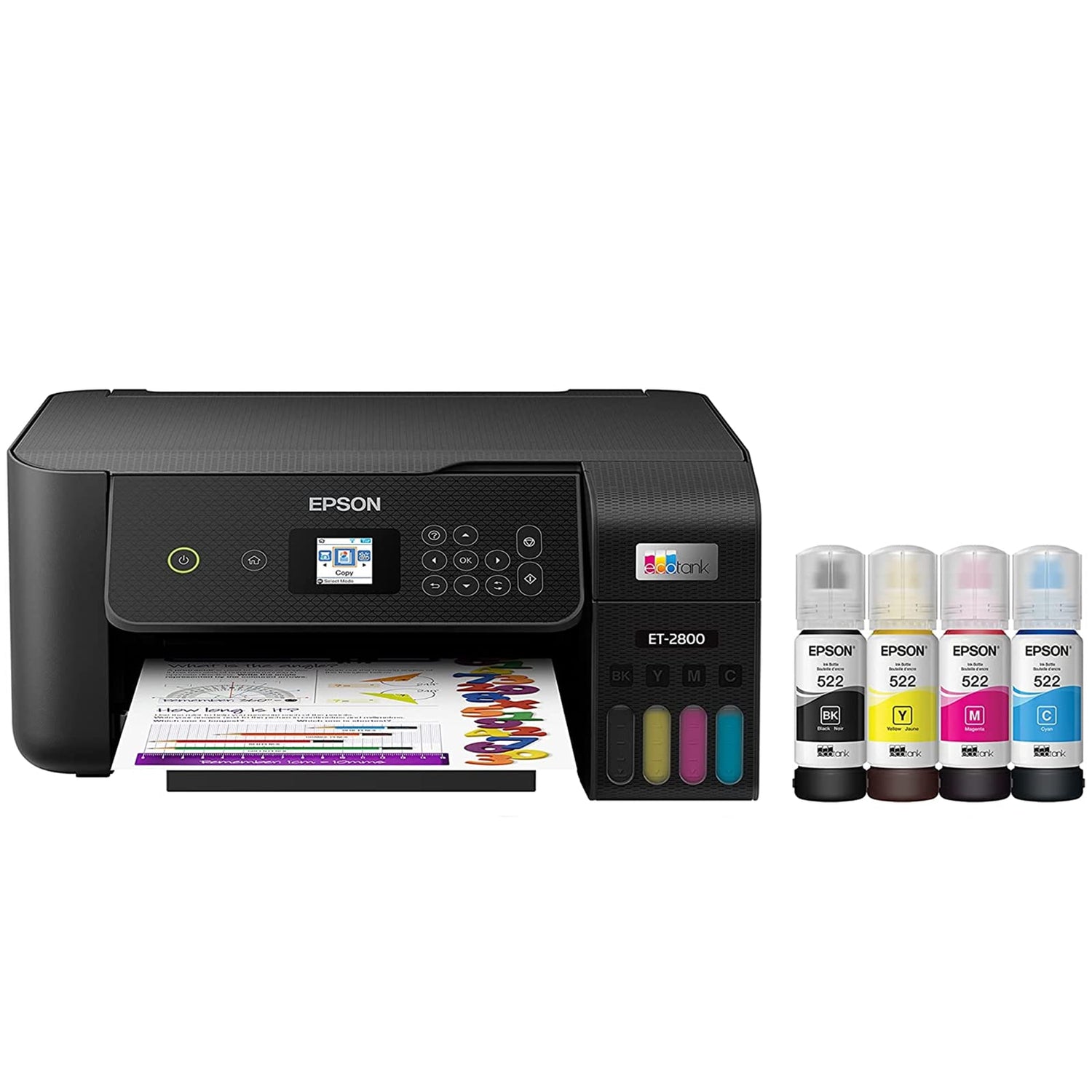 Epson EcoTank ET-2800 Wireless Color All-in-One Inkjet Printer, Print & Copy & Scan, 1200x2400 dpi, 1.44" Color LCD Display, Cartridge-Free, Photo Printing, Bundle with Printer Cable
