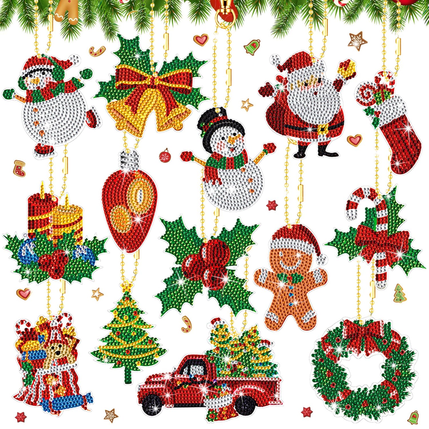 - Reliable and Quality: these DIY Christmas ornaments kits are mainly made with resin diamonds and acrylic card, shiny and vibrant that do not easily fade, the adhesive is strong, and the keychain material is durable, ensuring a lasting finish