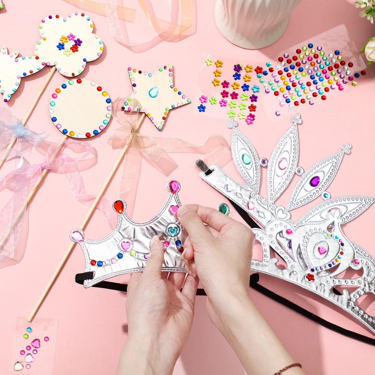 - Nice Combination: you will get 24 pieces of foam crowns, 24 pieces of wooden princess wands and matching 24 sheets of rhinestone stickers, ample quantities and nice combinations to meet your kids' DIY needs