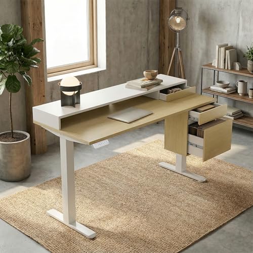 - Ergonomic Stan up Desk: The Perledesign electric desk features a robust steel frame equipped with aerospace-grade lifting column connectors, proven stable and secure after 100,000 test cycles. This solid build provides a steady foundation for work—even at its maximum height.
