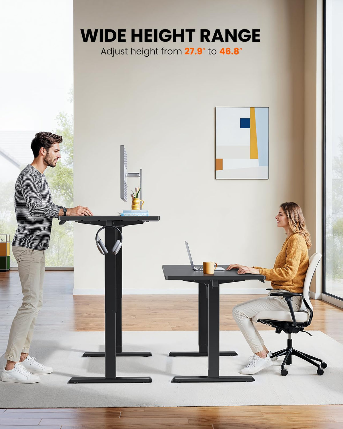- Sit-Stand Flexibility: The adjustable height standing desk offers a wide height range from 27.9″ to 46.8″ tall, making it easy to switch between sitting and standing positions. Transform your home office into a more dynamic workspace that encourages better posture, boosts energy, and enhances focus.
