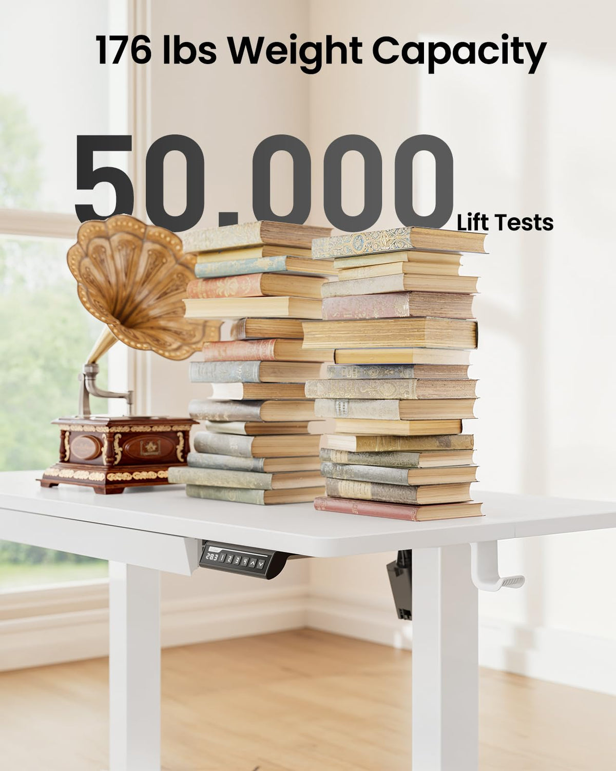 - 【Heavy-Duty Stability】Engineered for strength and durability, this height-adjustable desk features a reinforced T-shaped steel frame that supports up to 176 lbs with exceptional stability. Rigorously tested to withstand 50,000 lift cycles, it ensures reliable performance, making it the perfect addition to any professional or home office setup.