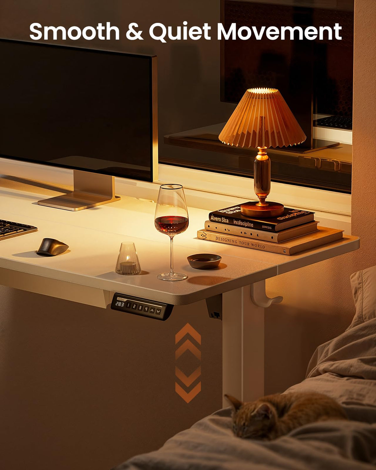 - 【Electric Height Adjustment】Effortlessly adjust the adjustable desk height between 28.3″ and 46.5″ with 4 memory height buttons and a lifting speed of 20mm/s, making it effortless to switch between sitting and standing conforms to the ergonomic structure. Equipped with a high-quality motor, it operates quietly at less than 55dB without disrupting your focus or workflow.