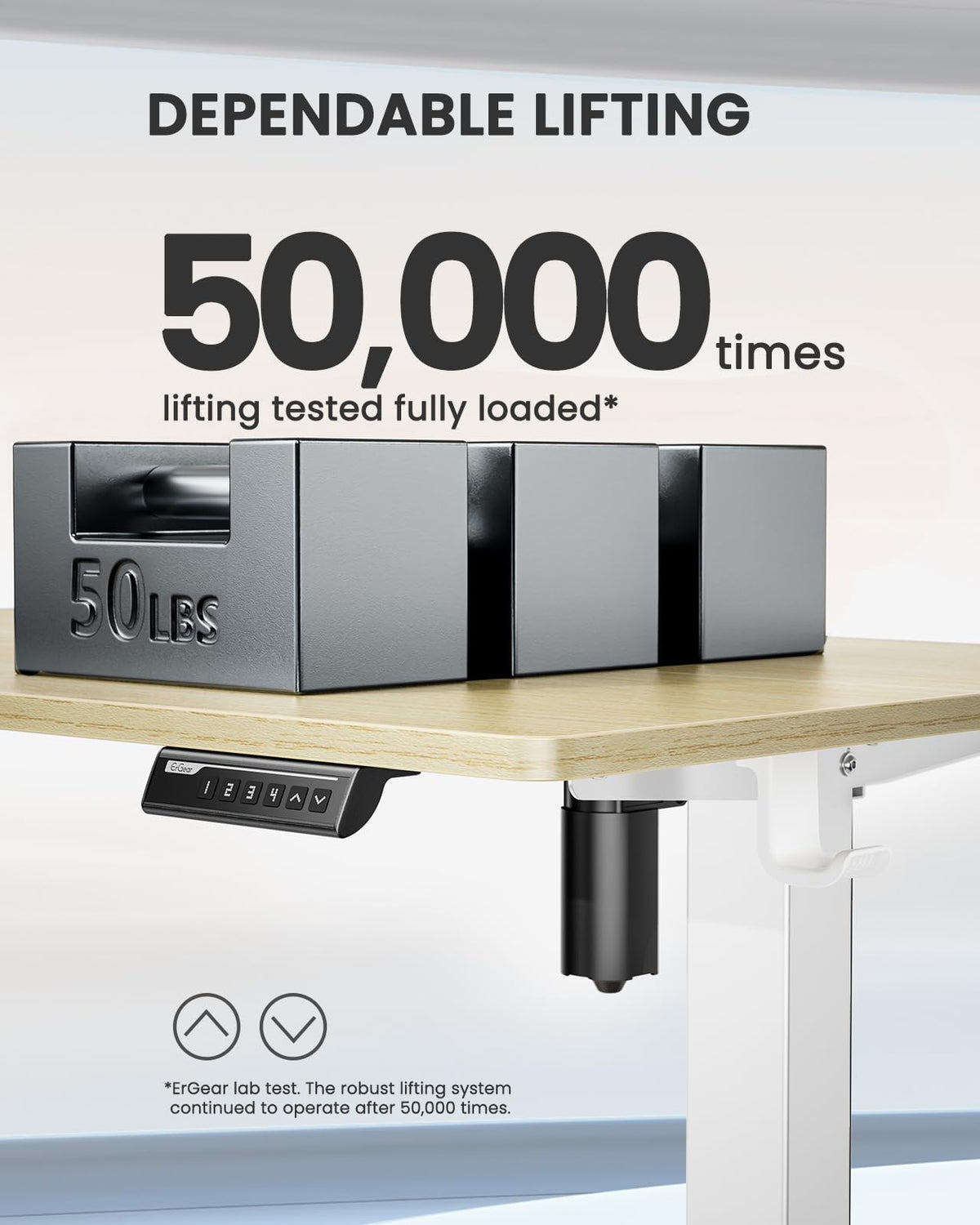 ErGear Height Adjustable Electric Standing Desk, 63x 28 Inches Sit Stand up Desk, Large Memory Computer Home Office Desk (Natural)
