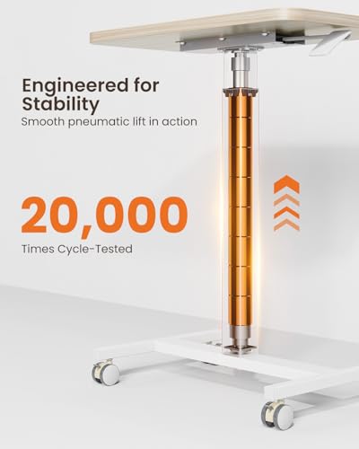 - Stands the Test of Time: This pneumatic standing desk features a smooth lift mechanism, tested over 20,000 cycles to ensure stability you can depend on and long-lasting performance. Built with cold-rolled steel, this laptop cart provides strong support and holds up to 33 lbs.
