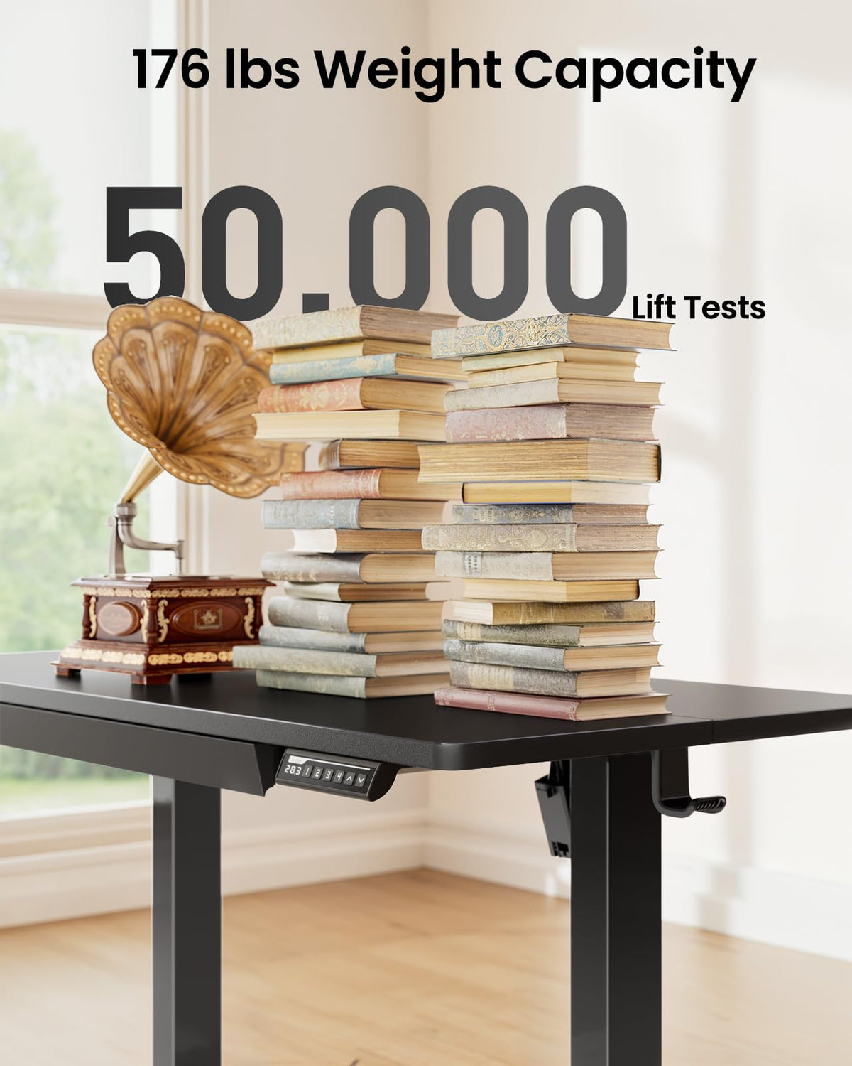 - 【176 LBS Heavy-Duty Stability】 ErGear’s electric standing desk is designed with a strong steel desk frame to easily support up to 176 lbs for reliable stability. Tested to withstand 50,000 lift cycles, this height-adjustable desk delivers long-lasting performance for any workspace.