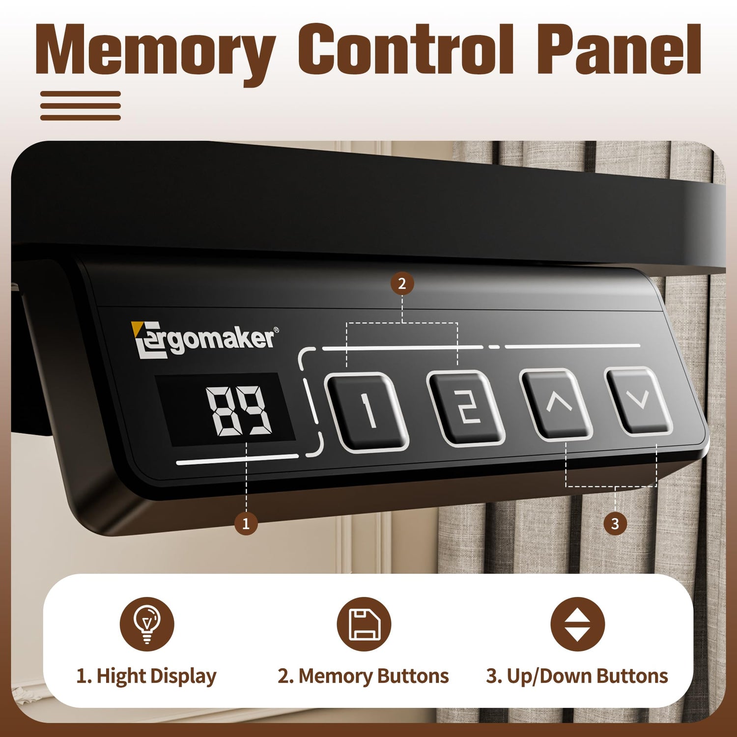 ERGOMAKER 35" Electric Standing Desk, Height Adjustable, Sit Stand Up Desk for Home Office & Computer Workstations, Memory Controller, Black