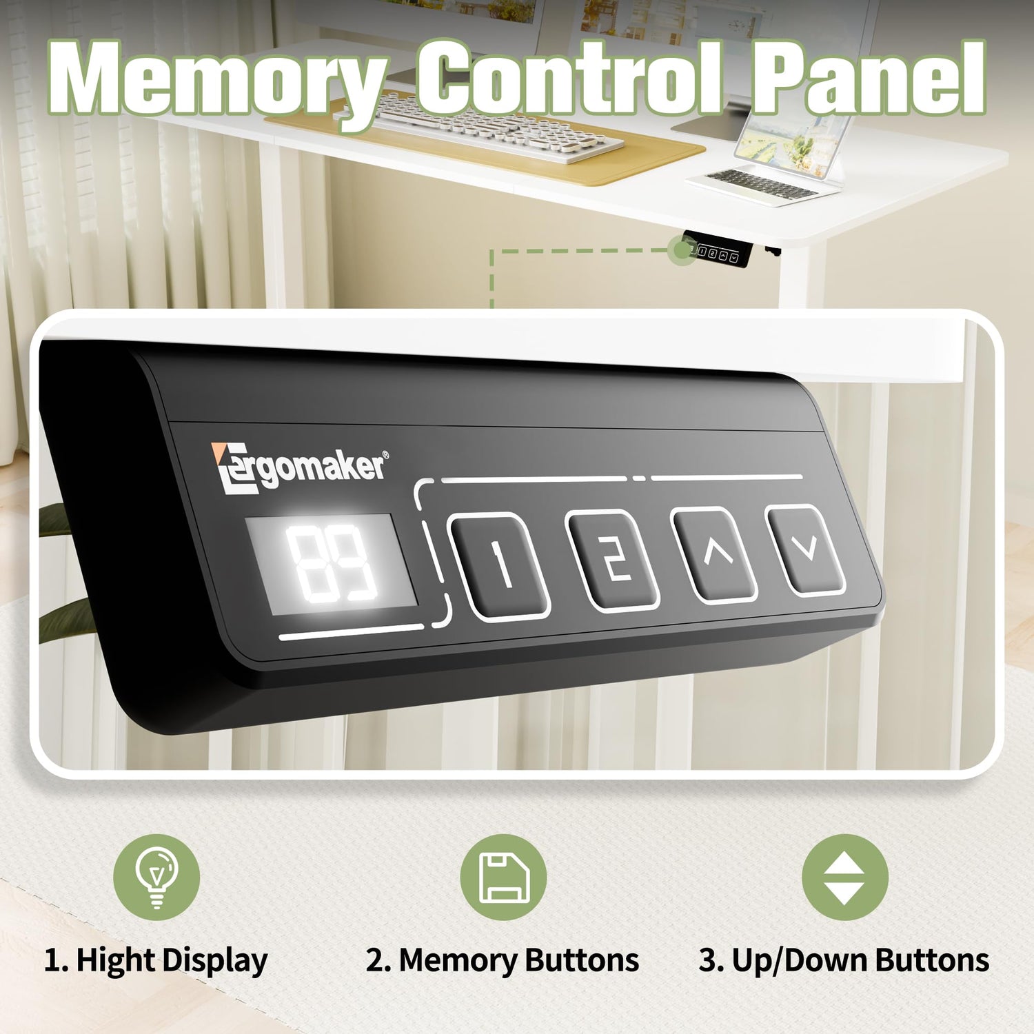 ERGOMAKER 63" Electric Standing Desk, Adjustable Height, Sit Stand Up Desk for Home Office & Computer Workstations, Memory Controller, White