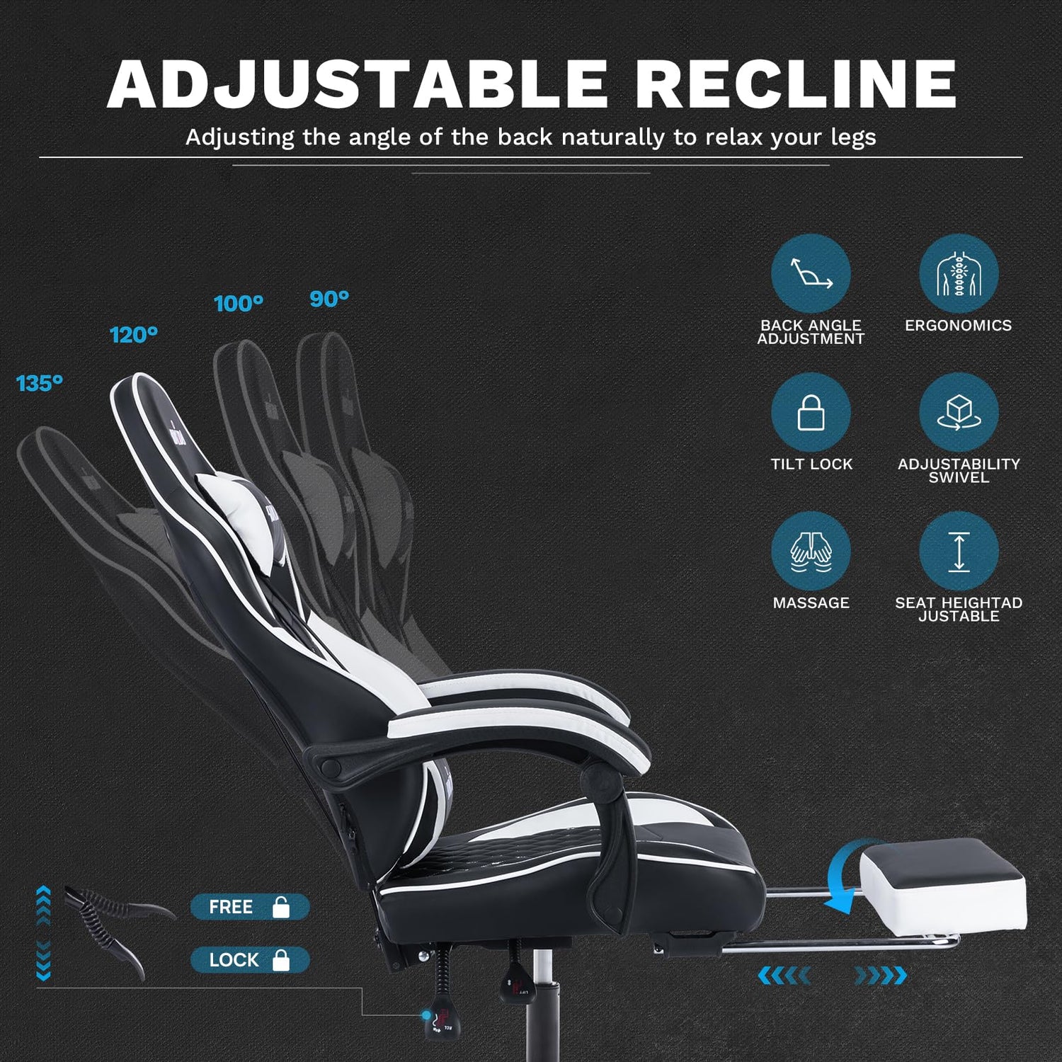 - Ergonomic Design: Adjustable high backrest can recline 90 ° - 135 ° and lock in any position, The backrest provide good lower back support and prevent your back from getting tired. It is also combined with the footrest, it can be used for gaming, working and napping.