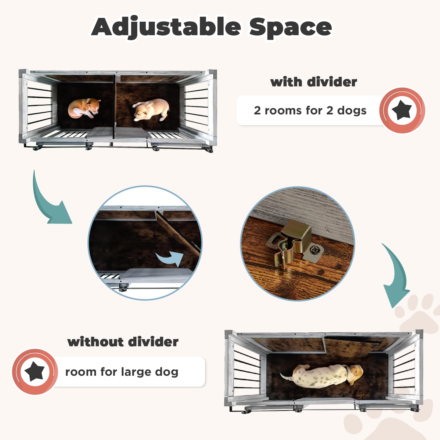 - 🐶【Separate spaces with dividers】Our dog crate furniture large breed are specially designed with dividers to create two separate areas for medium sized dogs or to allocate space on one side for dog food; Open the divider to allow large dogs to move around.