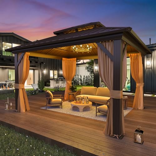 - [ DOUBLE TOPS DESIGN ] - Outdoor gazebo has ventilated double tops provide safety from harmful UV rays while the unique design allows wind to pass through.Hardtop gazebos for patios can tolerate high summer temperatures and withstand UV rays,provides you plenty of cool shade to enjoyment.