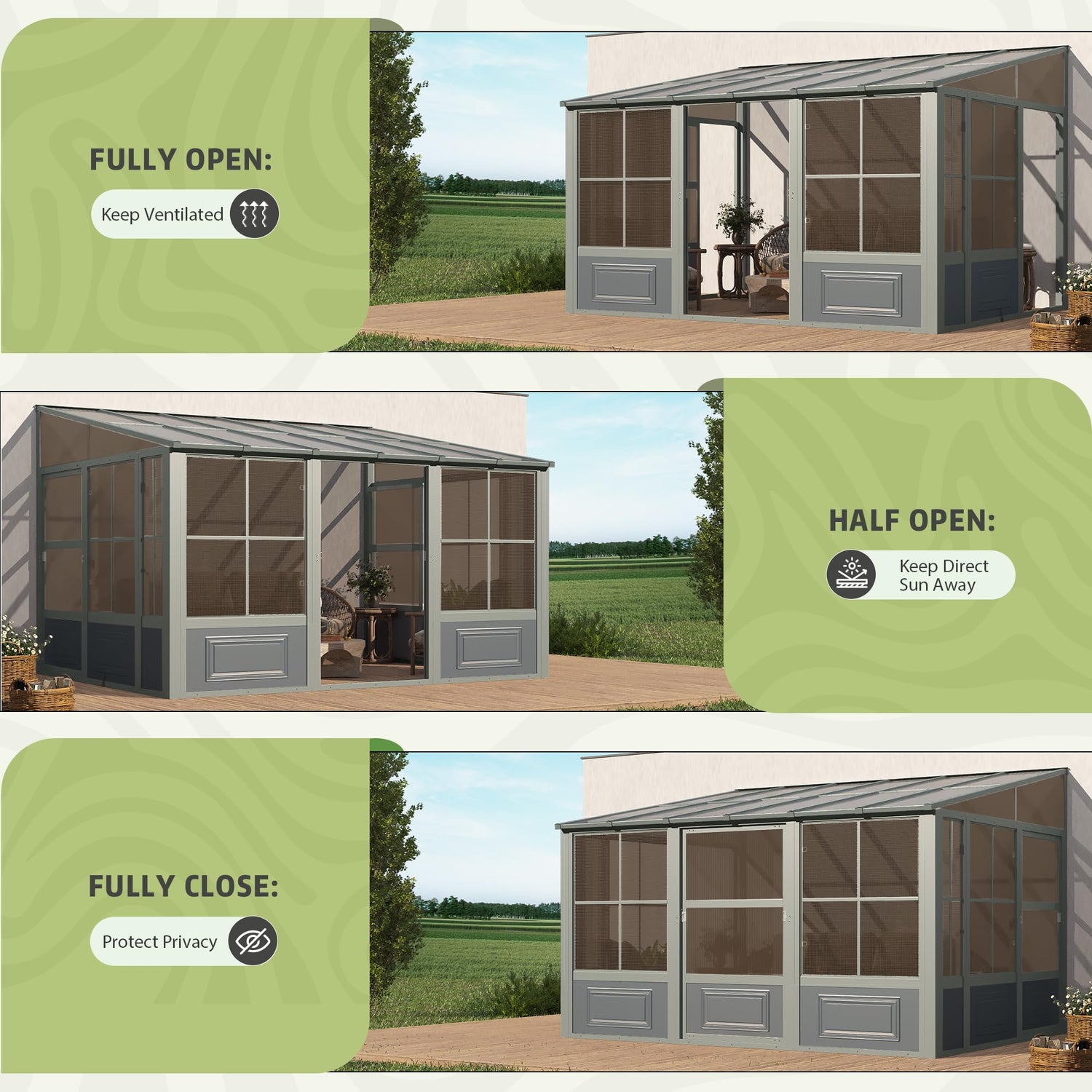 EROMMY 10' x 12' Sunroom, Wall Mounted Gazebo Solarium with Aluminum Frame, Polycarbonate Roof, Permanent Sun Room with Sliding Doors, Lockable PC Screen Walls, Lean to Gazebo for Garden, Patio, Deck