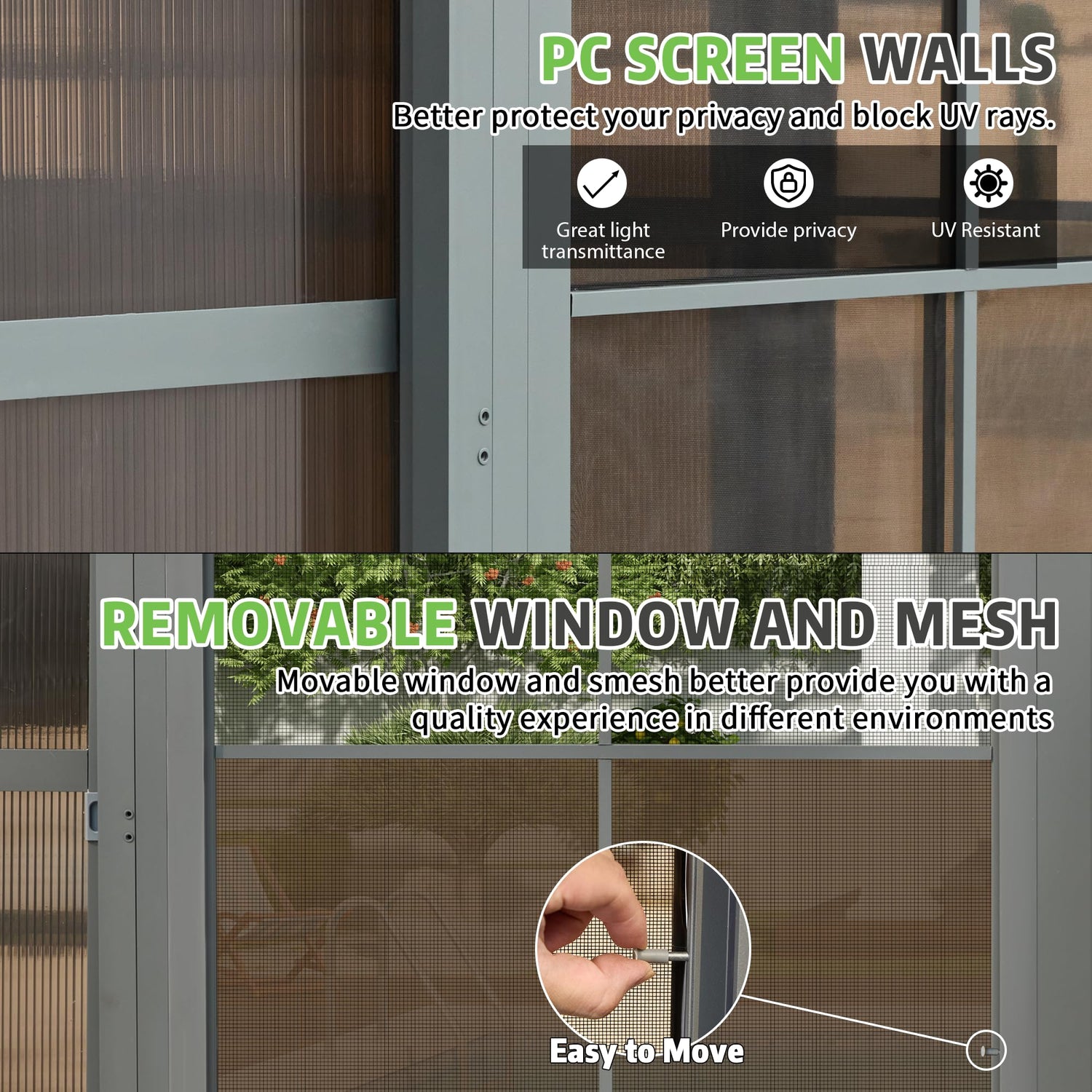 - 【HIGH-QUALITY PC PANEL】: The outdoor sunroom uses PC panels. This material can not only ensure sufficient indoor light, but also block harmful ultraviolet rays and protect privacy. The 6mm thick thickened panels make the sunroom greater stability and weather resistance.