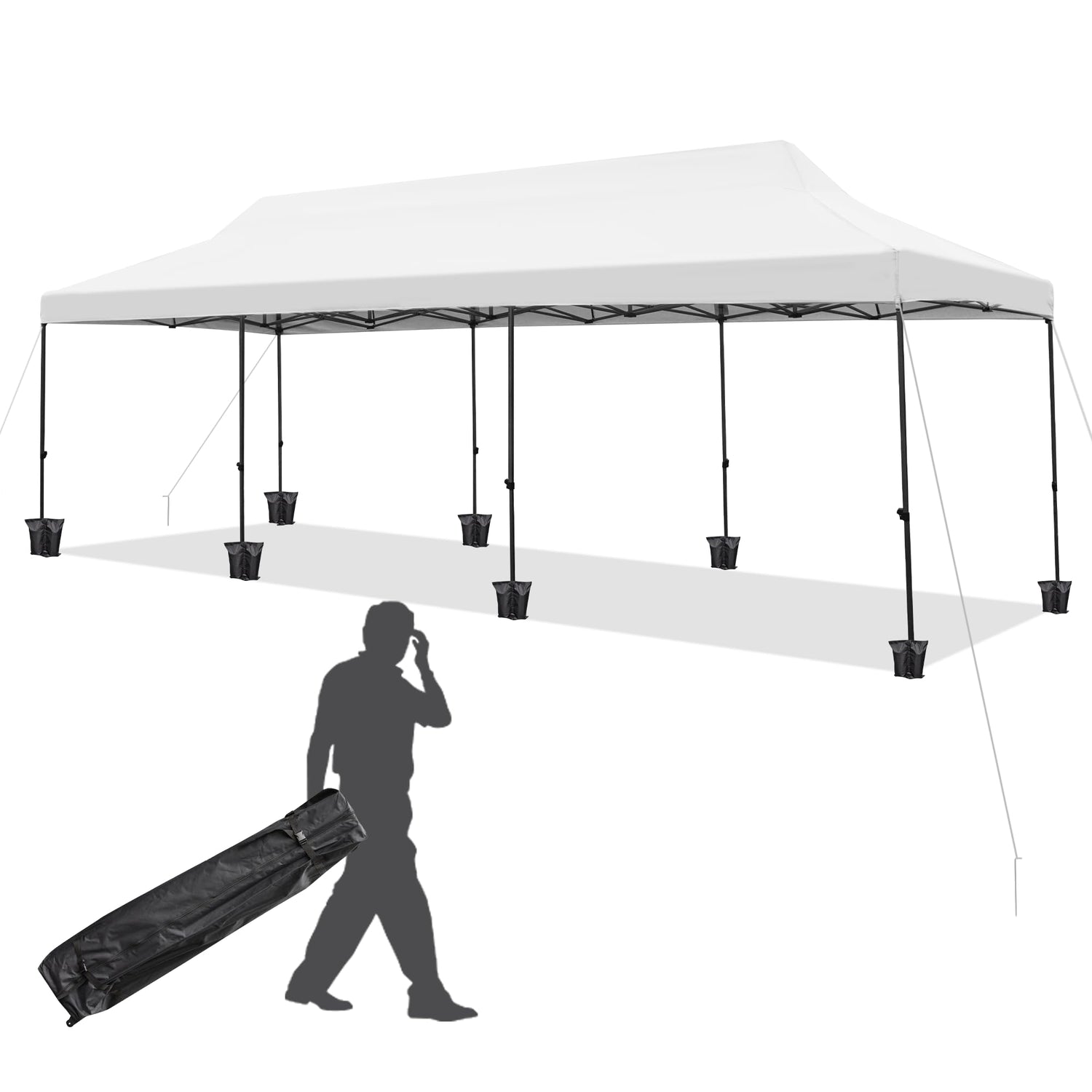 EROMMY 10' x 30' Pop Up Canopy Tent, Commercial Instant Canopy Heavy Duty with Roller Bag, 8 Sand Bags, 8 Wind Ropes & Ground Nails, Outdoor Canopies for Party Festival Event Wedding Camping