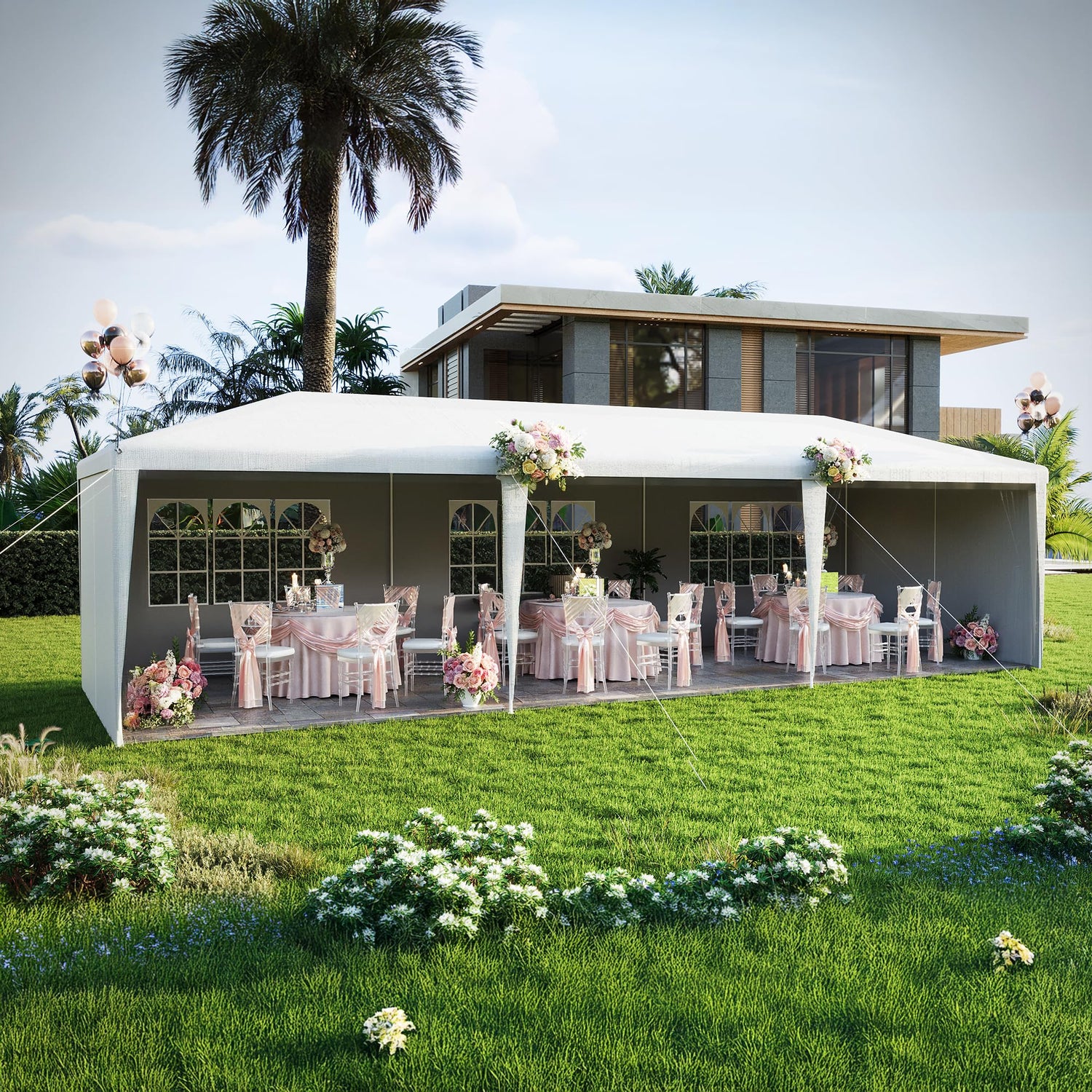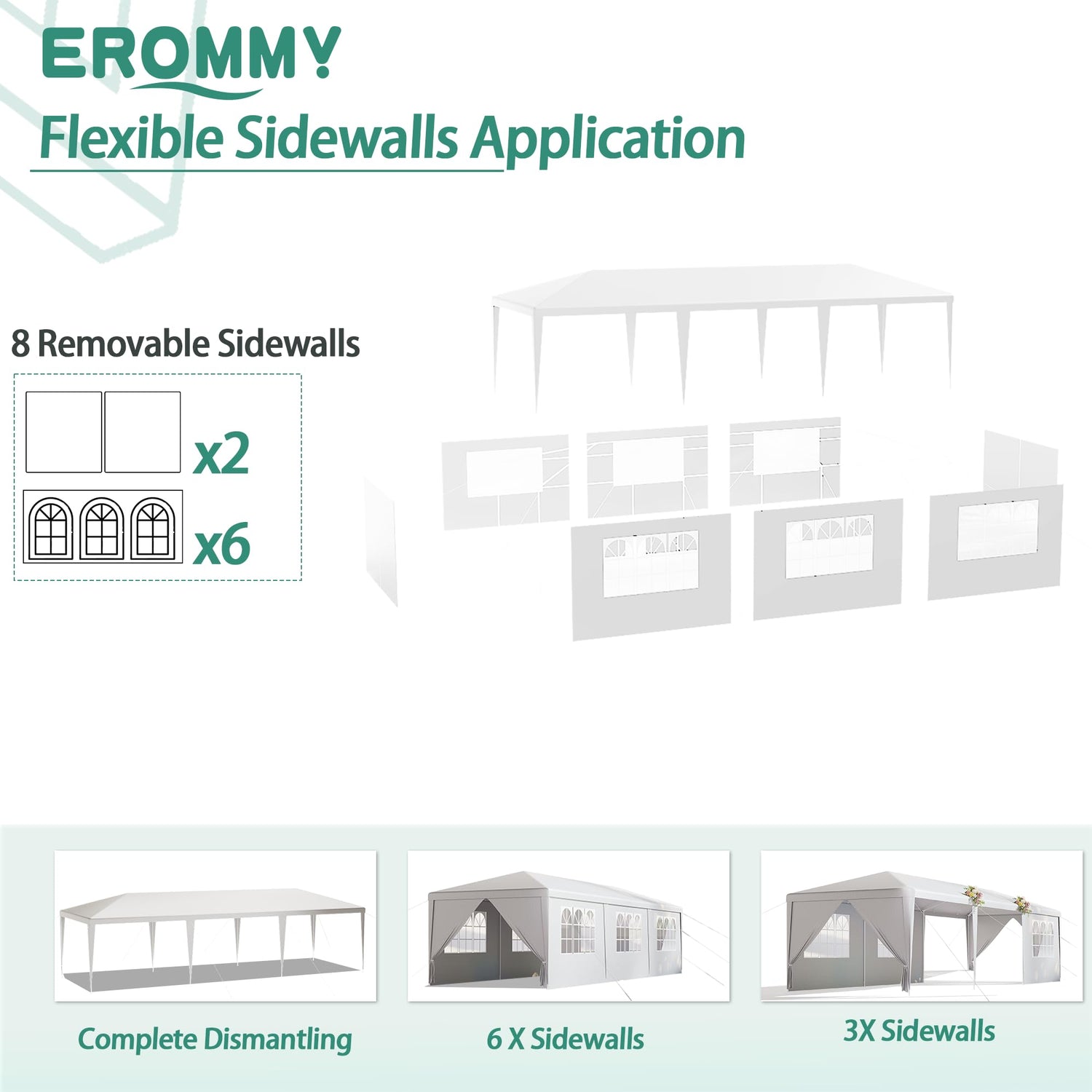 EROMMY 10x30FT Outdoor Party Tent, White Waterproof Event Canopy with 6 Removable Sidewalls & 2 Zipper Doors for Wedding, Birthday, BBQ, and Holiday Celebrations