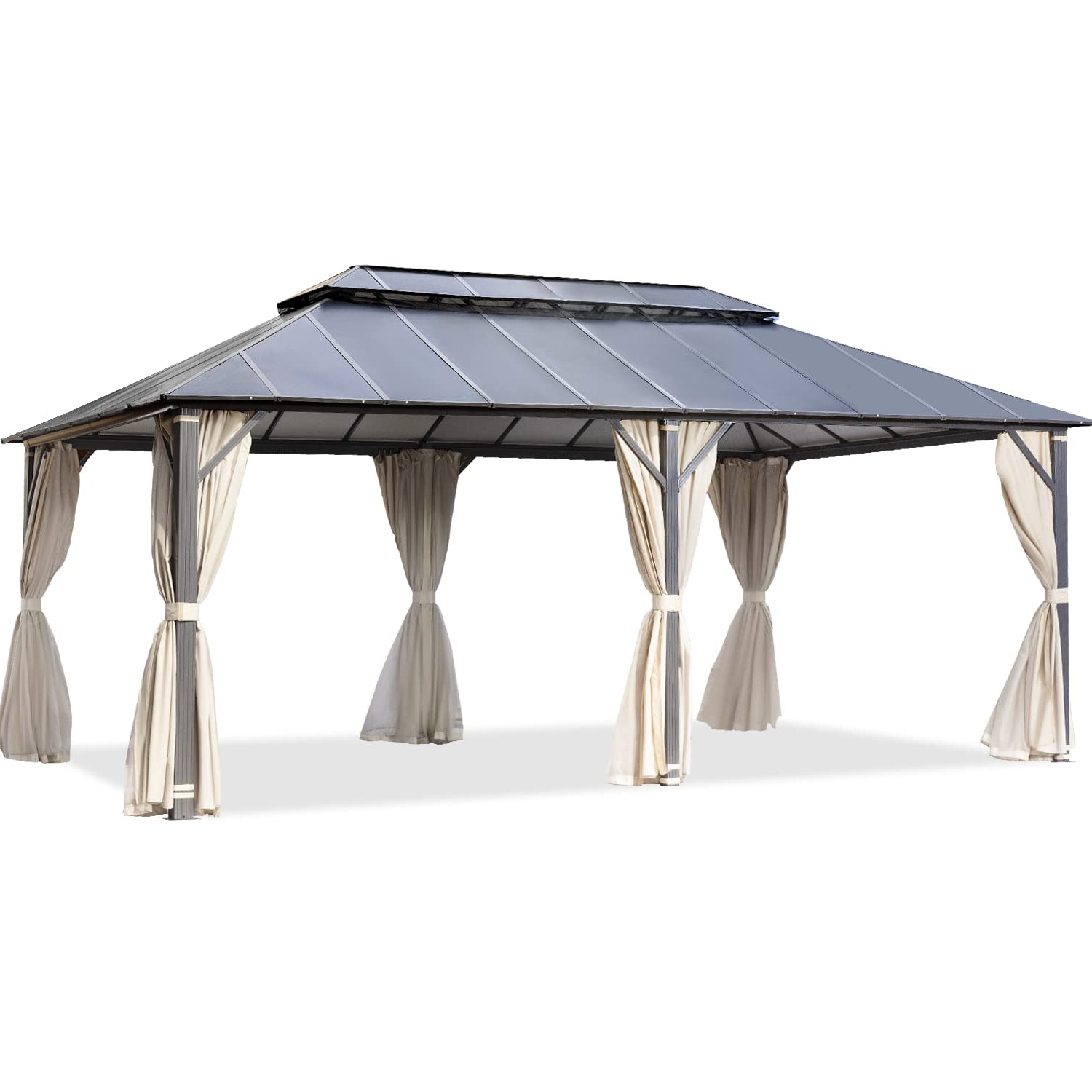EROMMY 12' x 20' Gazebo Outdoor Double Roof Aluminum Composite Canopy Aluminum Frame Pavilion with Curtains and Netting for Patio Lawn Garden Backyard