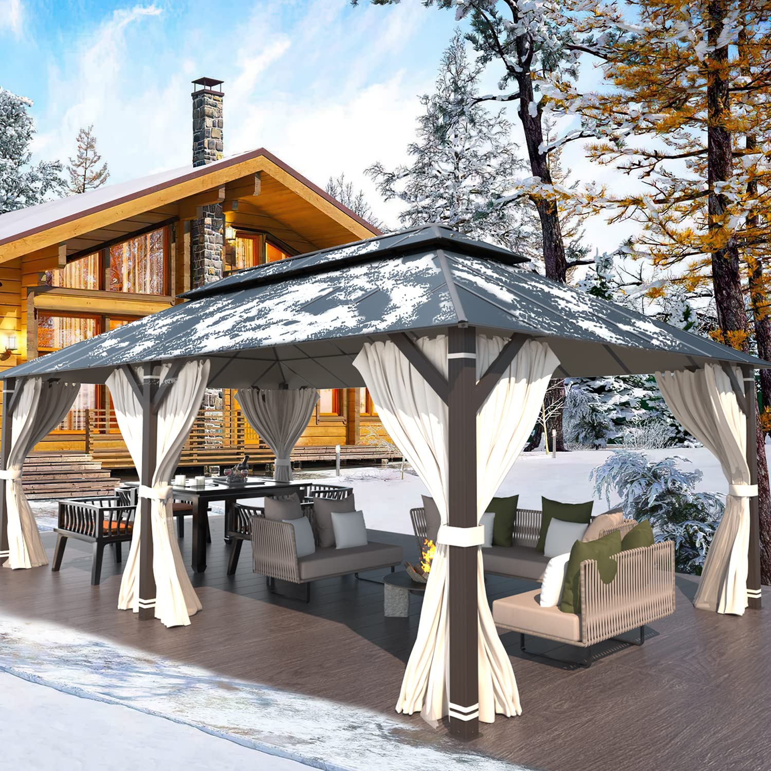 - [ Double Roof Design ] The unique double roof hardtop gazebo allow more air circulation, can provide the best airflow and comfort, ensuring stability under high wind conditions. It's transformed the back patio to an awesome space to sit outside and enjoy the weather.