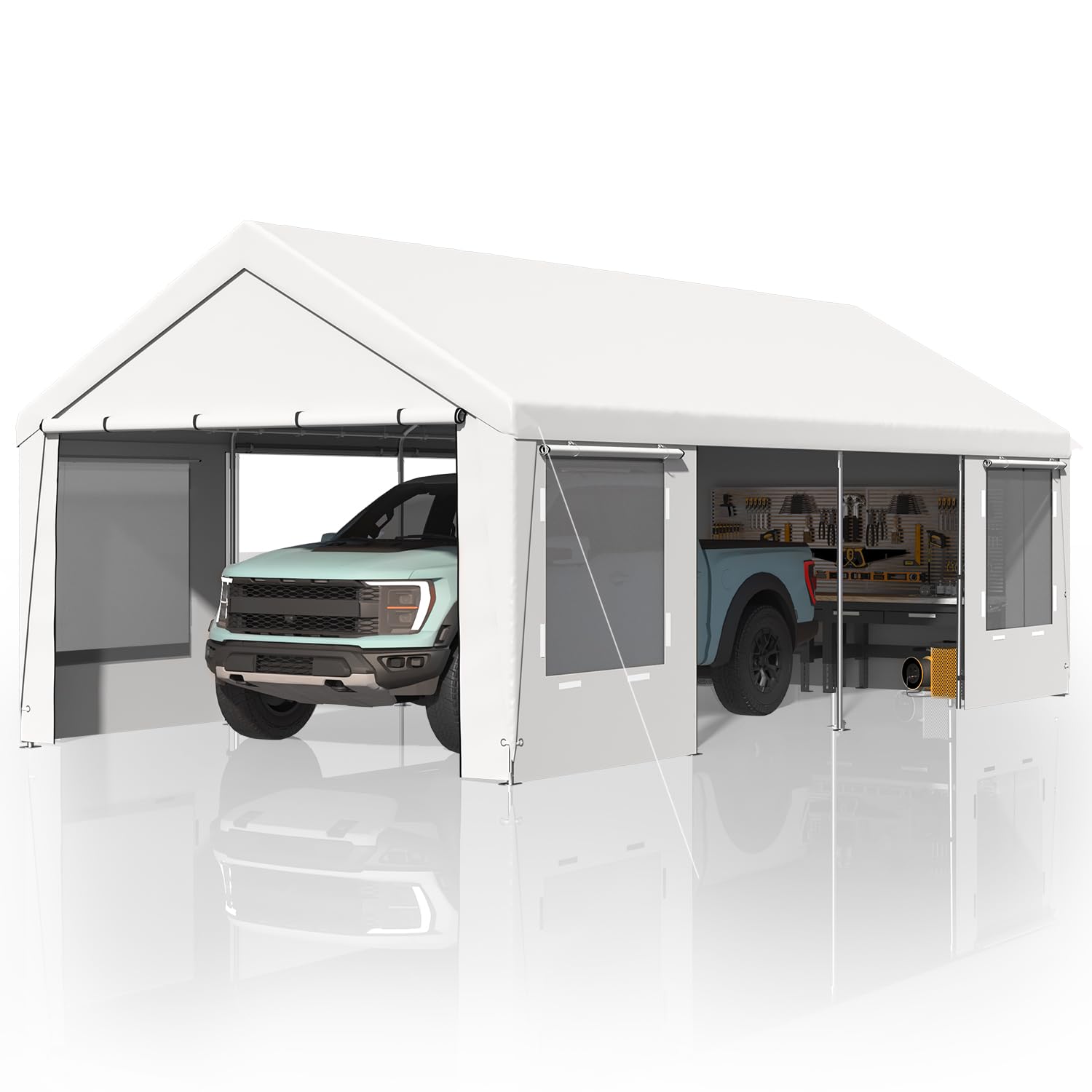 - 【Spacious 12x24FT Carport】The heavy duty carport can parks SUVs, trucks, RVs, or boats effortlessly with a generous 12'L x 24'W x 10'H design! The extra-height roof and wide coverage not only protect vehicles but also store outdoor gear, seasonal items, or workshop tools. Ideal for driveways, backyards, or commercial use