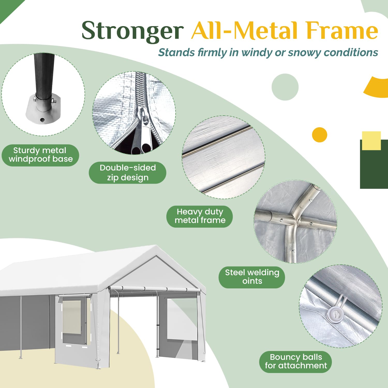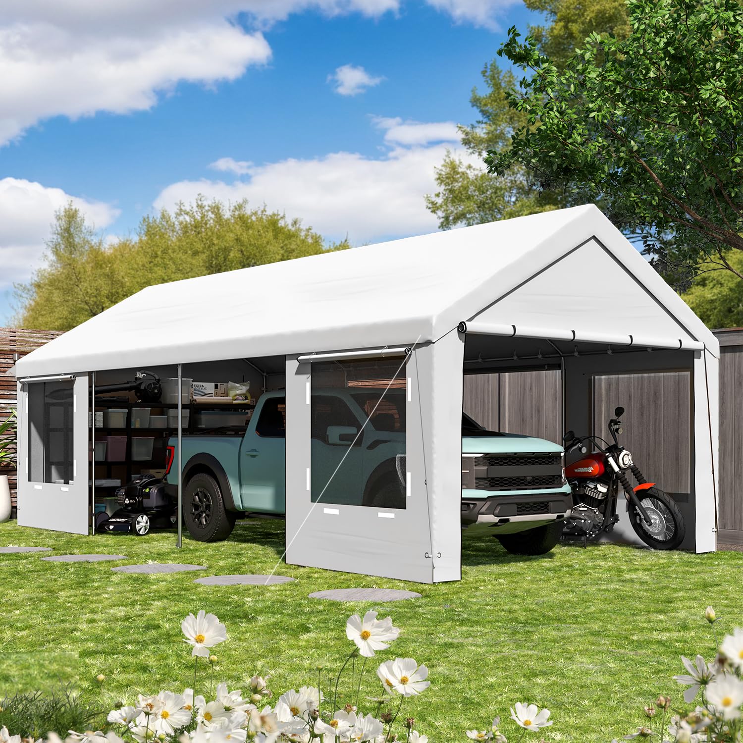 EROMMY 12' x 24' Heavy Duty Carport,Portable Garage with UV Protection & Steel Frame, Car Port with Removable Sidewalls, All-Season Car Canopy for Tractor, Truck, Boat, White