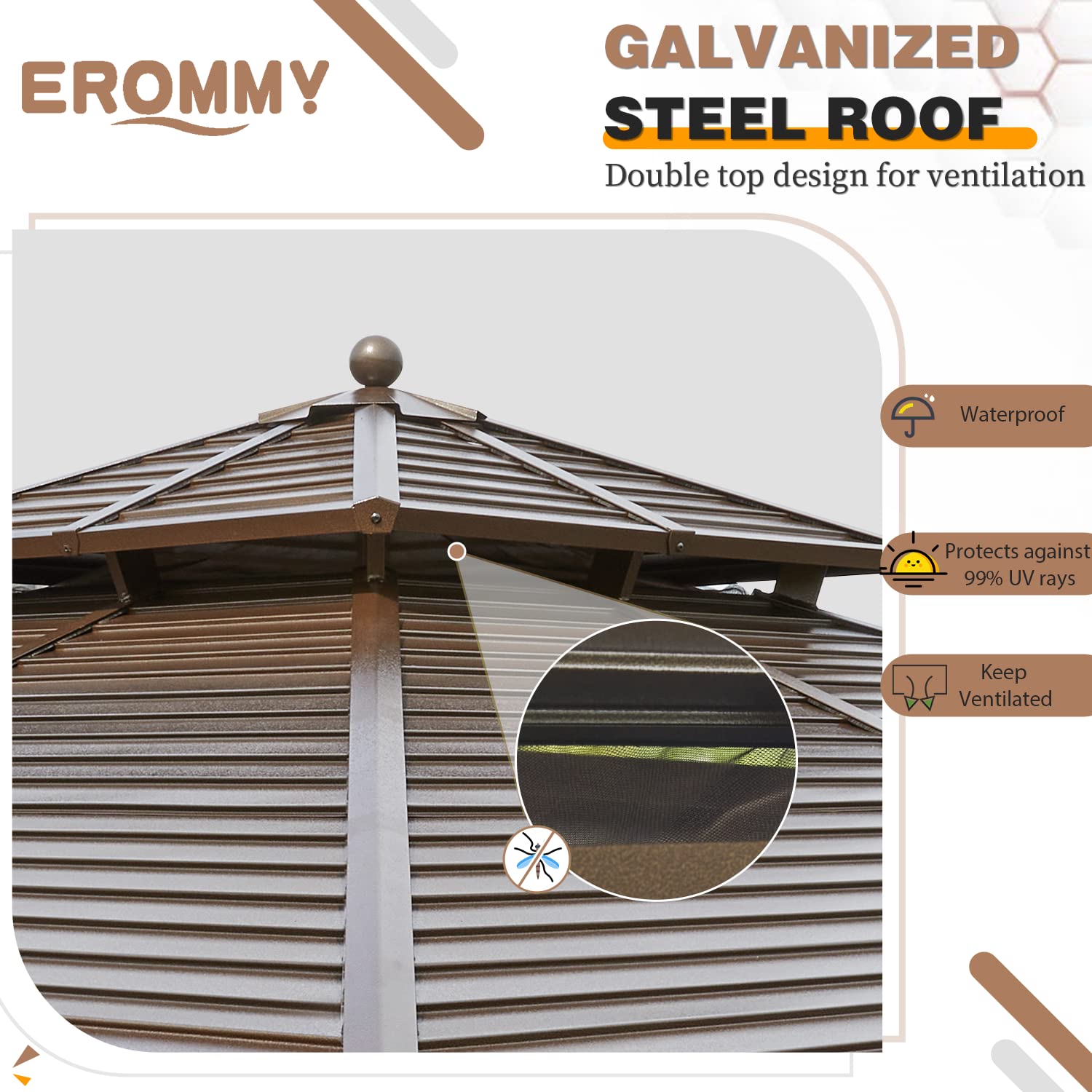 EROMMY 12'x12' Hardtop Gazebo Galvanized Steel Outdoor Gazebo Canopy Double Vented Roof Pergolas Aluminum Frame with Netting and Curtains for Garden,Patio,Lawns,Parties