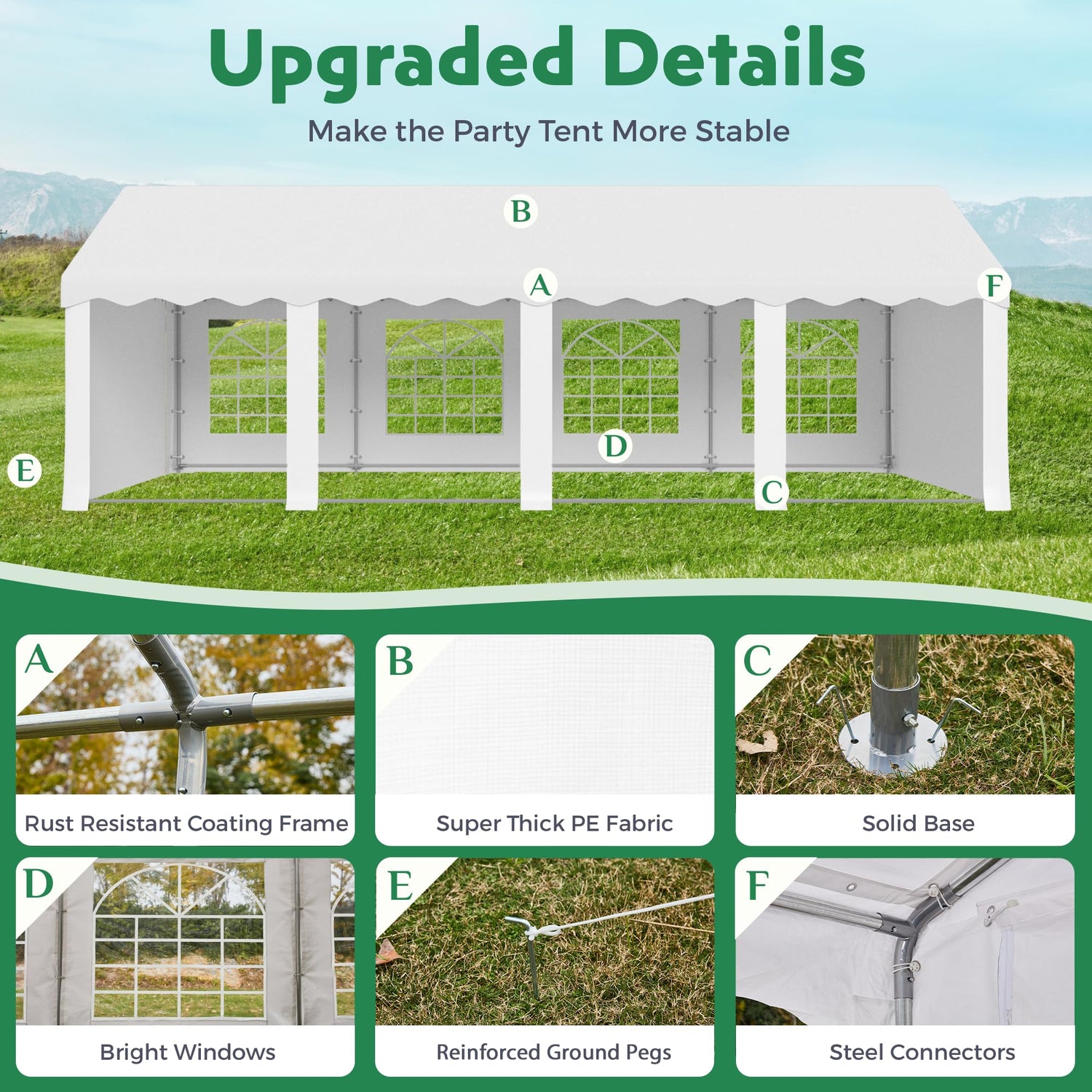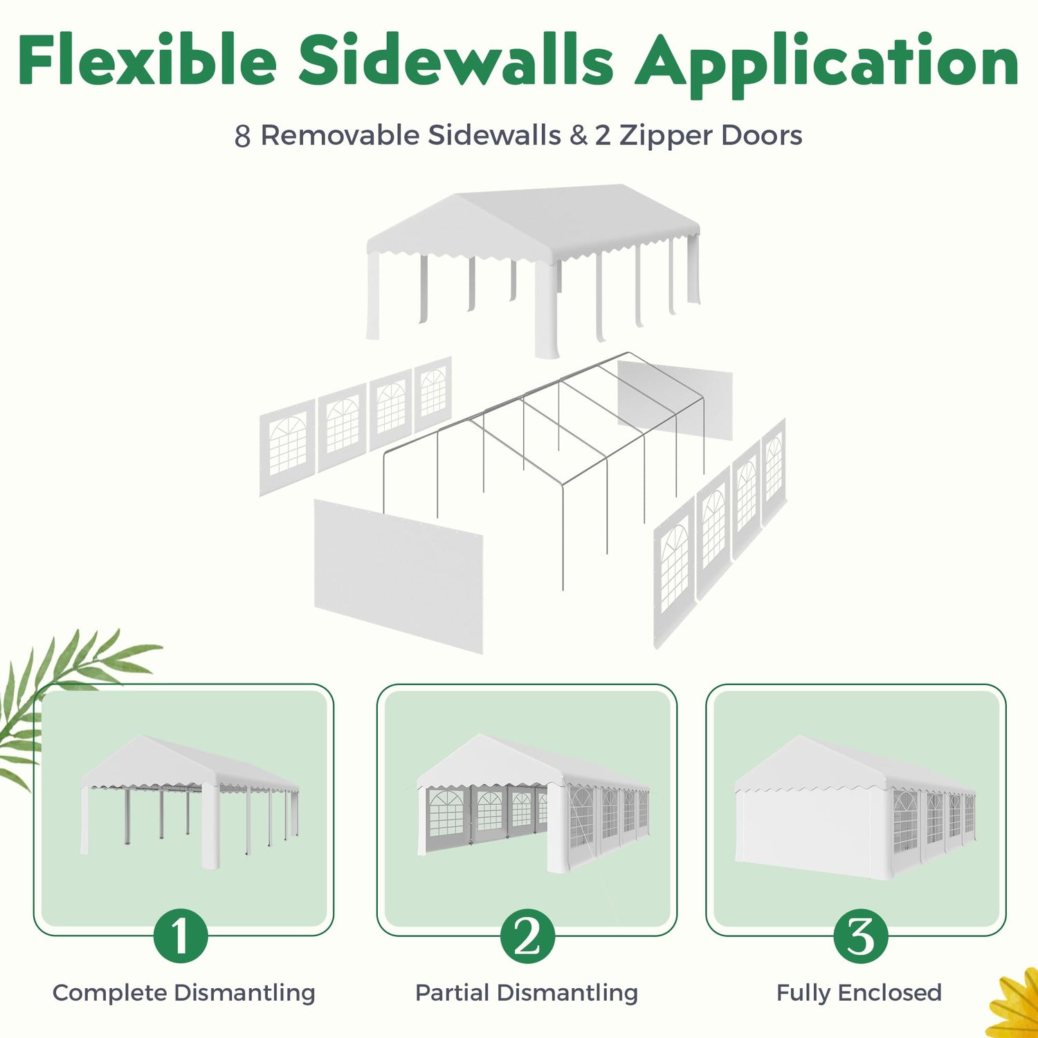 EROMMY 13x26ft Outdoor Party Tent, Heavy Duty Wedding Canopy with 8 Removable Sidewalls, 2 Roll-up Doors & 2 Storage Bags, Gazebo Shelter Tent for Party Event Commercials, White