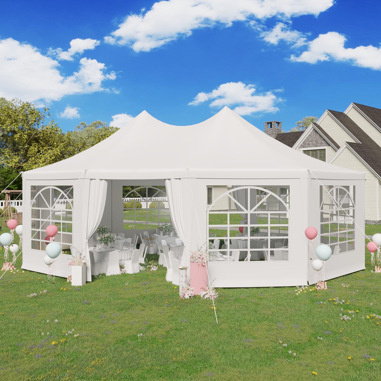 EROMMY 26x19ft Party Tent, White Wedding Tent, Decagonal Heavy Duty Canopy with 8 Removable Sidewalls, 8 Church Windows and 2 Pull-Back Doors, Outdoor Gazebo Pavilion Shelter Tent for Party, Event