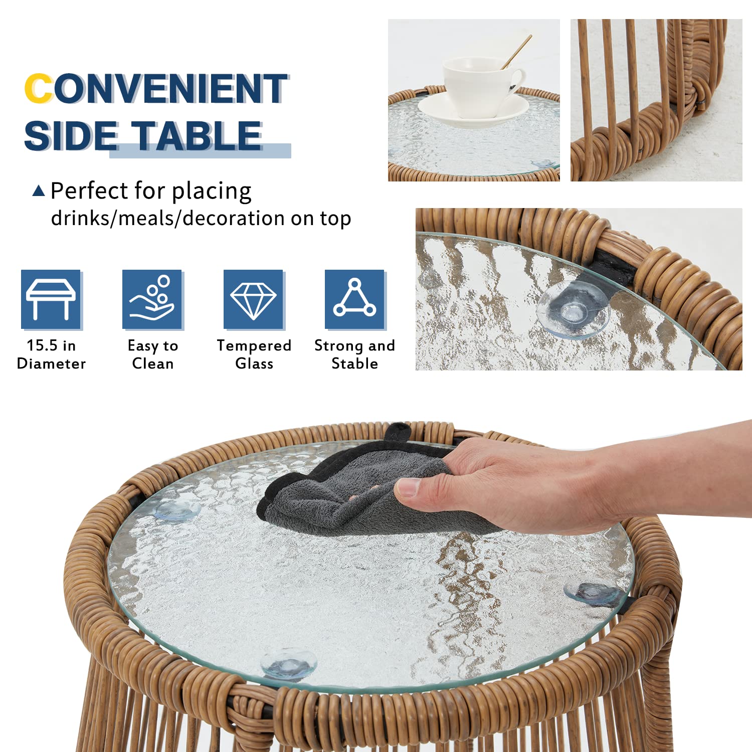 - [ Modern Design ] Clean lines contrast with rounded edges, and natural and white colors provide a sleek, minimalist look. This rattan conversation set is the ideal modern accessory for your outdoor space.
