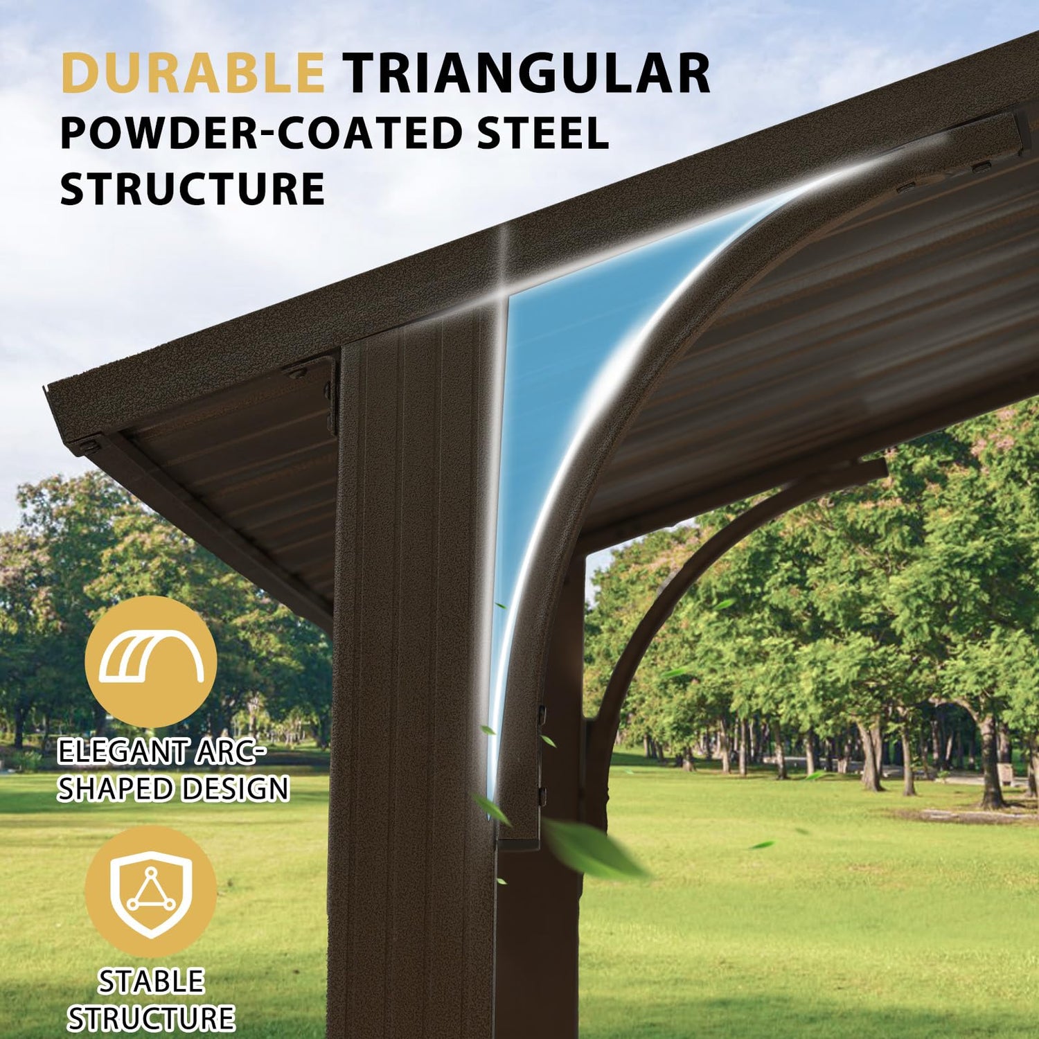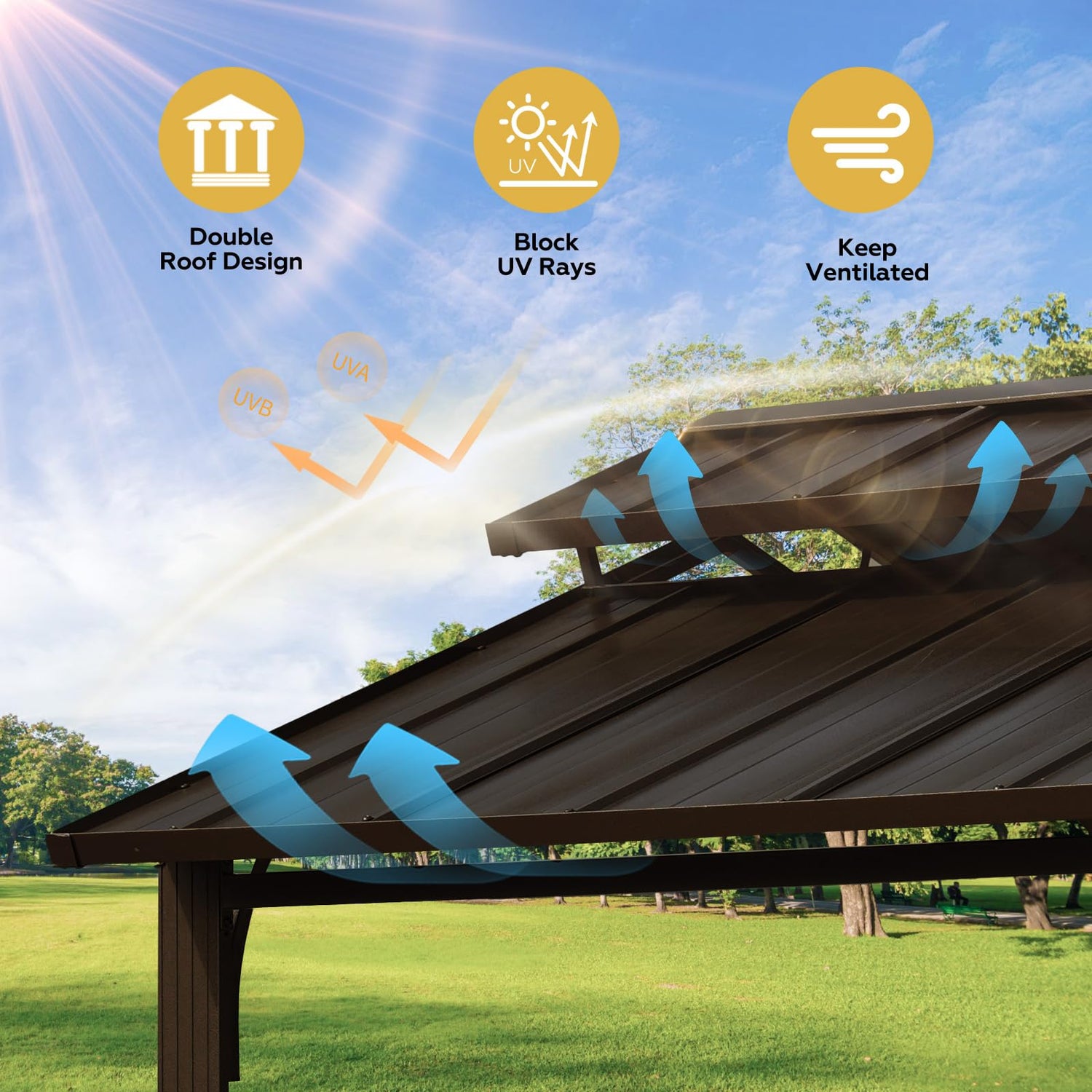 - Perfect for Any Outdoor Space: Perfect addition to any patio, backyard, lawn or garden. Whether you're hosting a family barbecue, gathering with friends, or just relaxing outdoors, this hardtop gazebo provides the ideal space for any outdoor activities