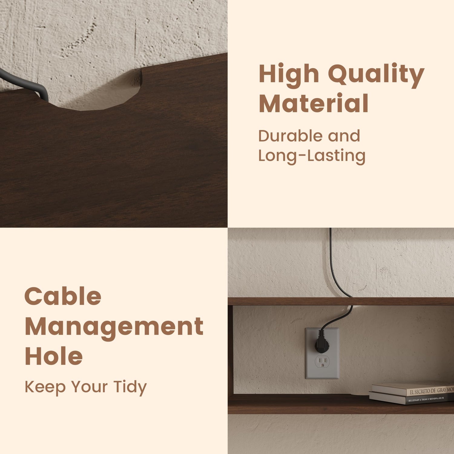 - Cable Management: Our wall mounted TV shelf has the storage cable hole specially designed to hide cords inside the stand. It makes everything look neat