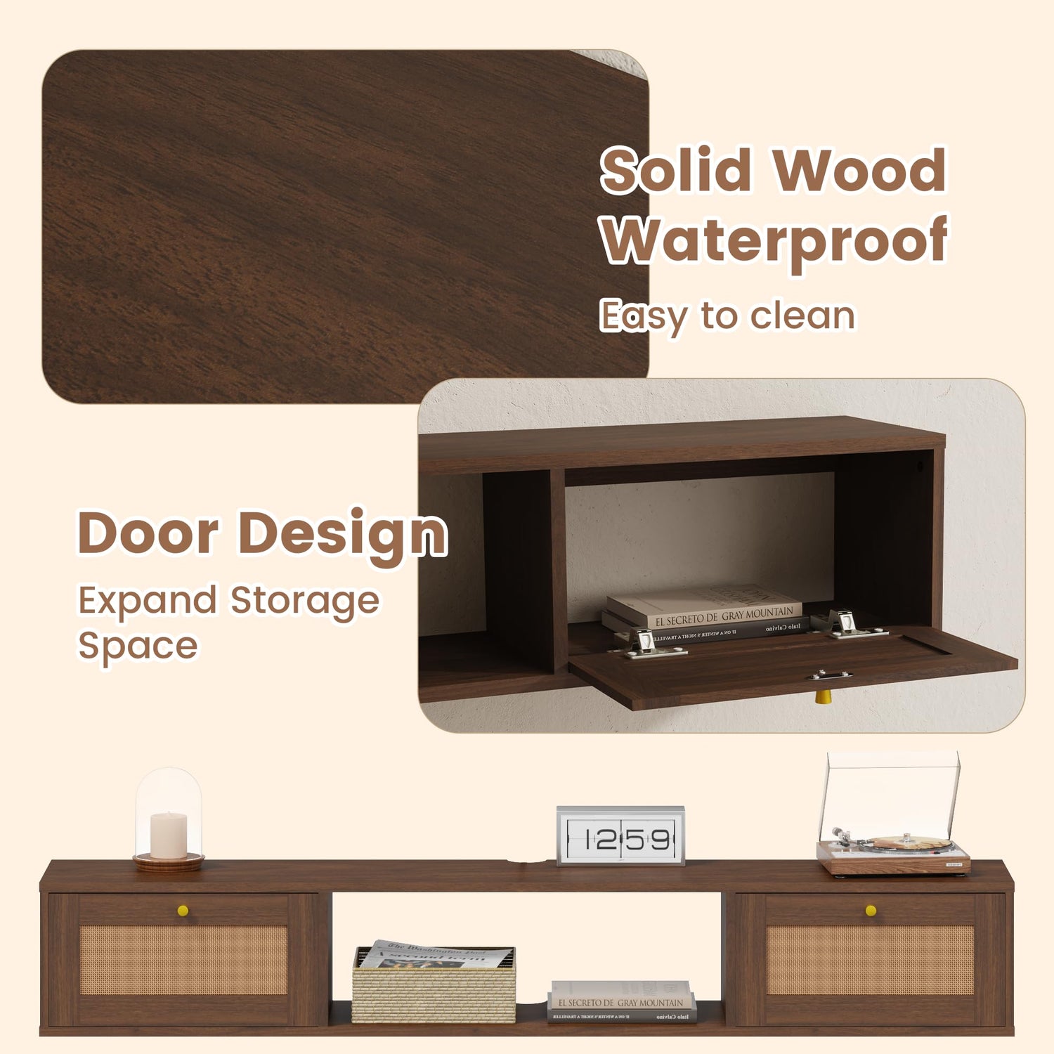 - Vintage Design: Simple and vintage design make this floating rattan tv stand easily complements any style of room or furniture. Two open storage shelves are also excellent locations for placing decorations, making your room more charming