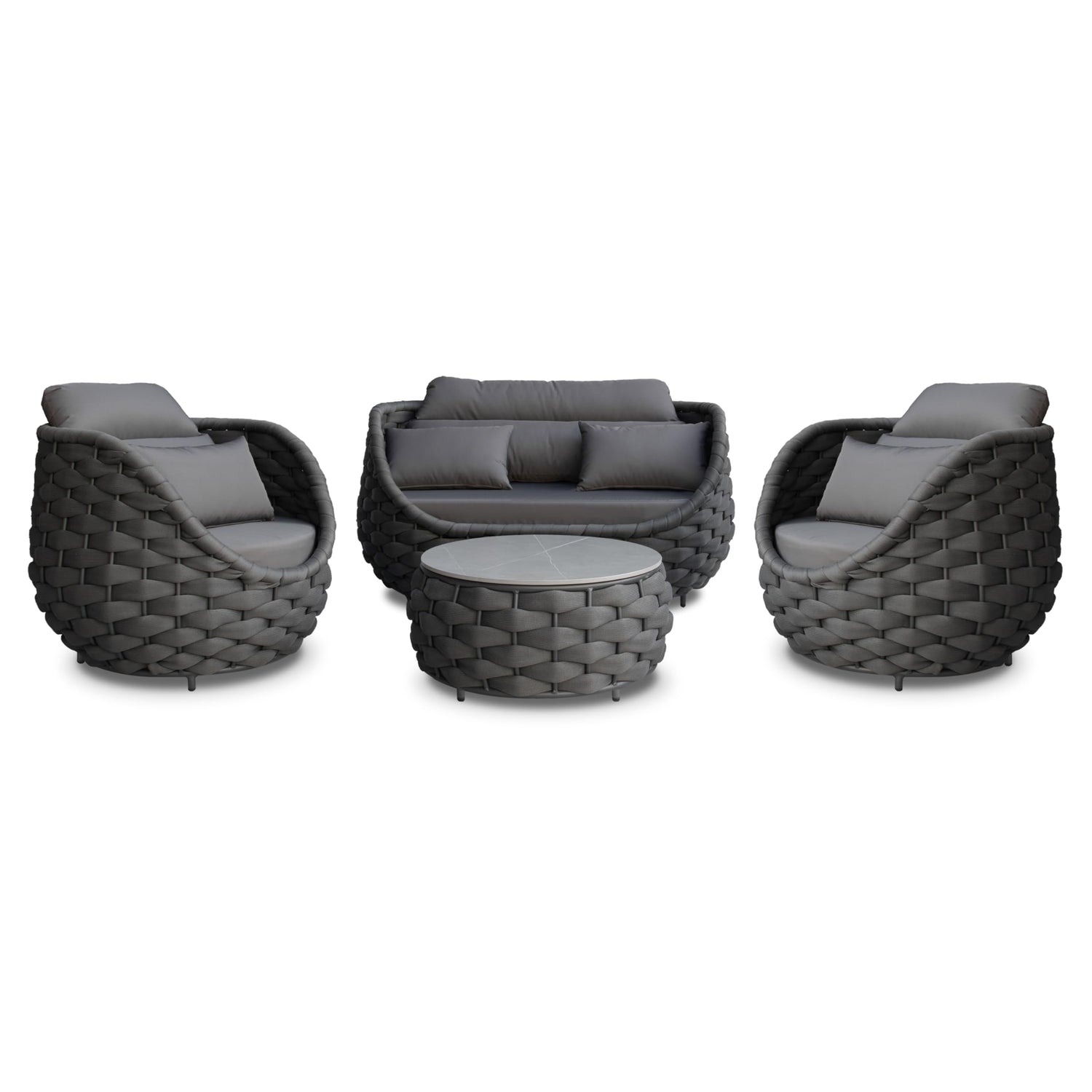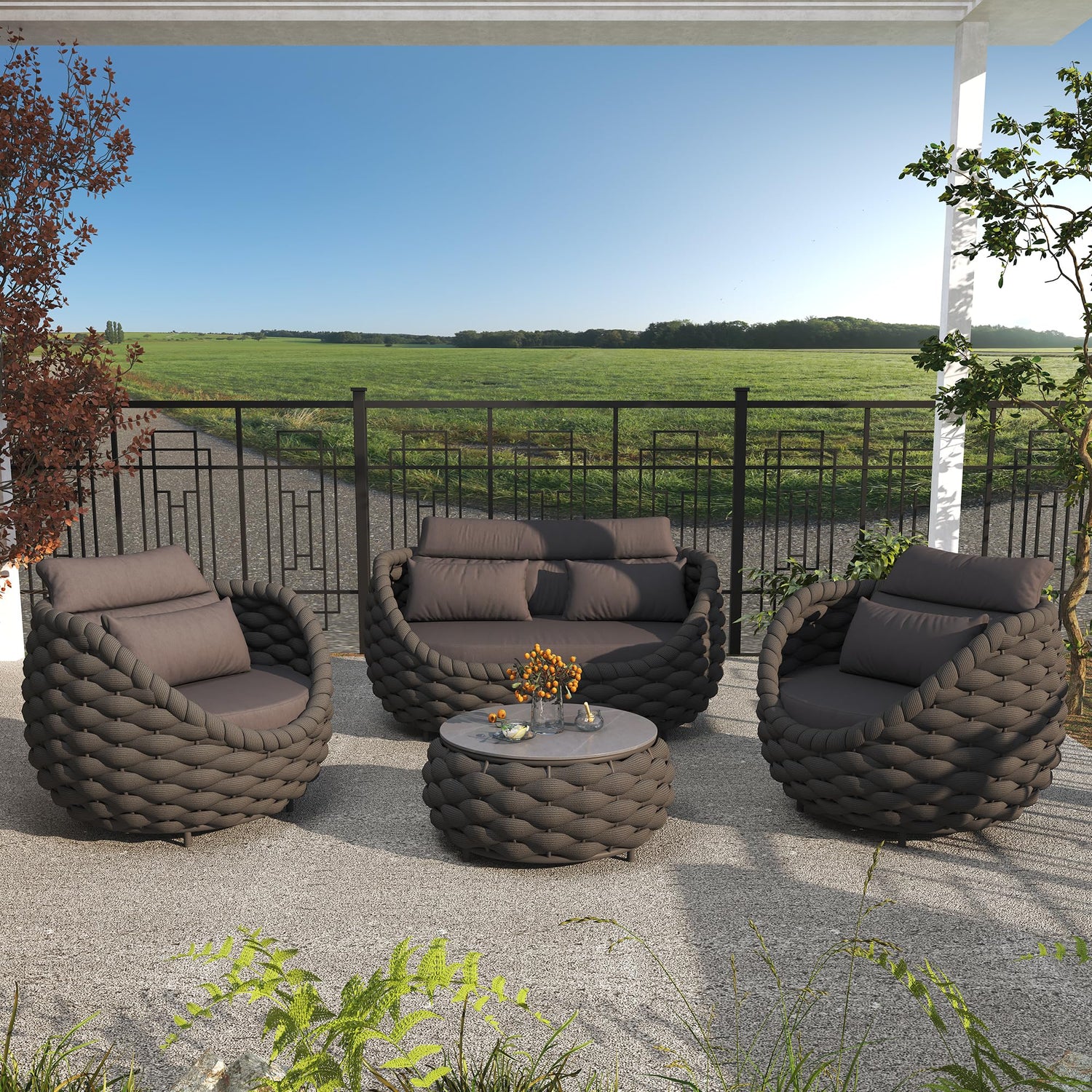 - Patio Set for outdoor Use : Crafted with heavy-duty rust-free aluminum frame, the Erotr outdoor furniture set is wrapped in handwoven polyester braided ropes that resists sun's UV, abrasion, and fading for outdoor and indoor long-lasting durability