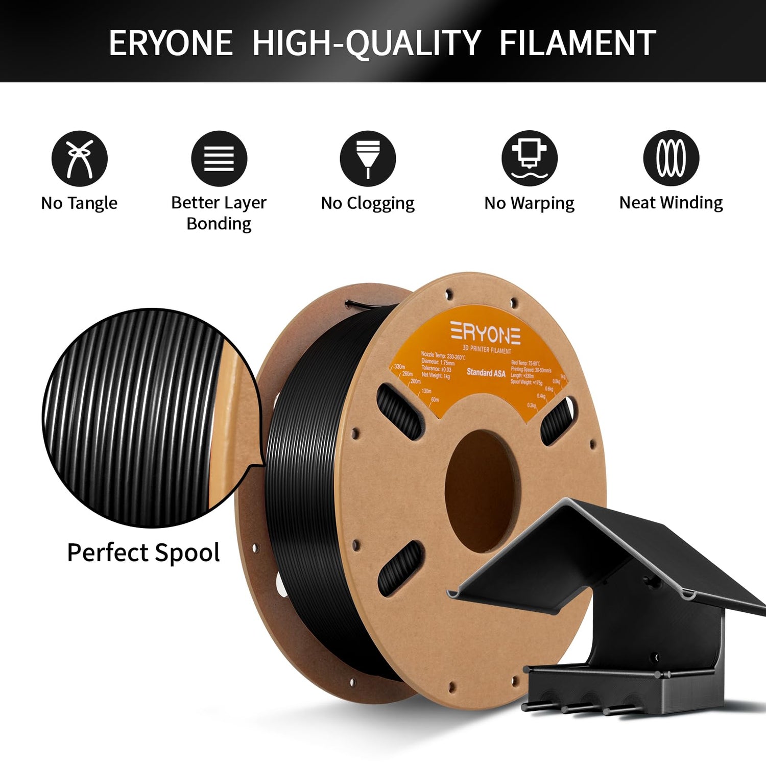 - [High-quality ASA Filament] ERYONE ASA Filament is highly resistant to UV, heat and weather. ASA filament is very suitable for printing outdoor functional parts such as remote control aircraft or car accessories.