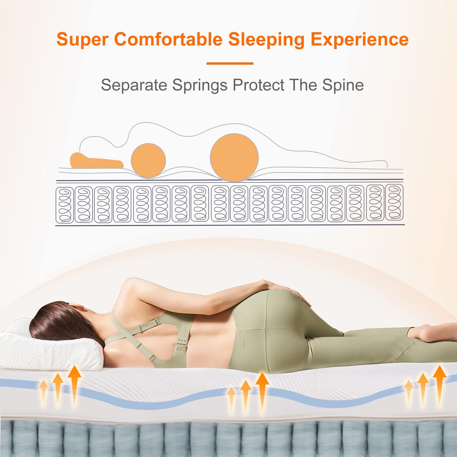 - ERGONOMIC DESIGN TO RELIEVE BACKACHE - Total 5 layer materials. 2.5‘ gel infused air memory foam (light blue), 2.2‘ high-density memory foam, 6.3‘ pocket spring support edge system (319 independent pockets springs by high technology), 1‘ high-density support foam.