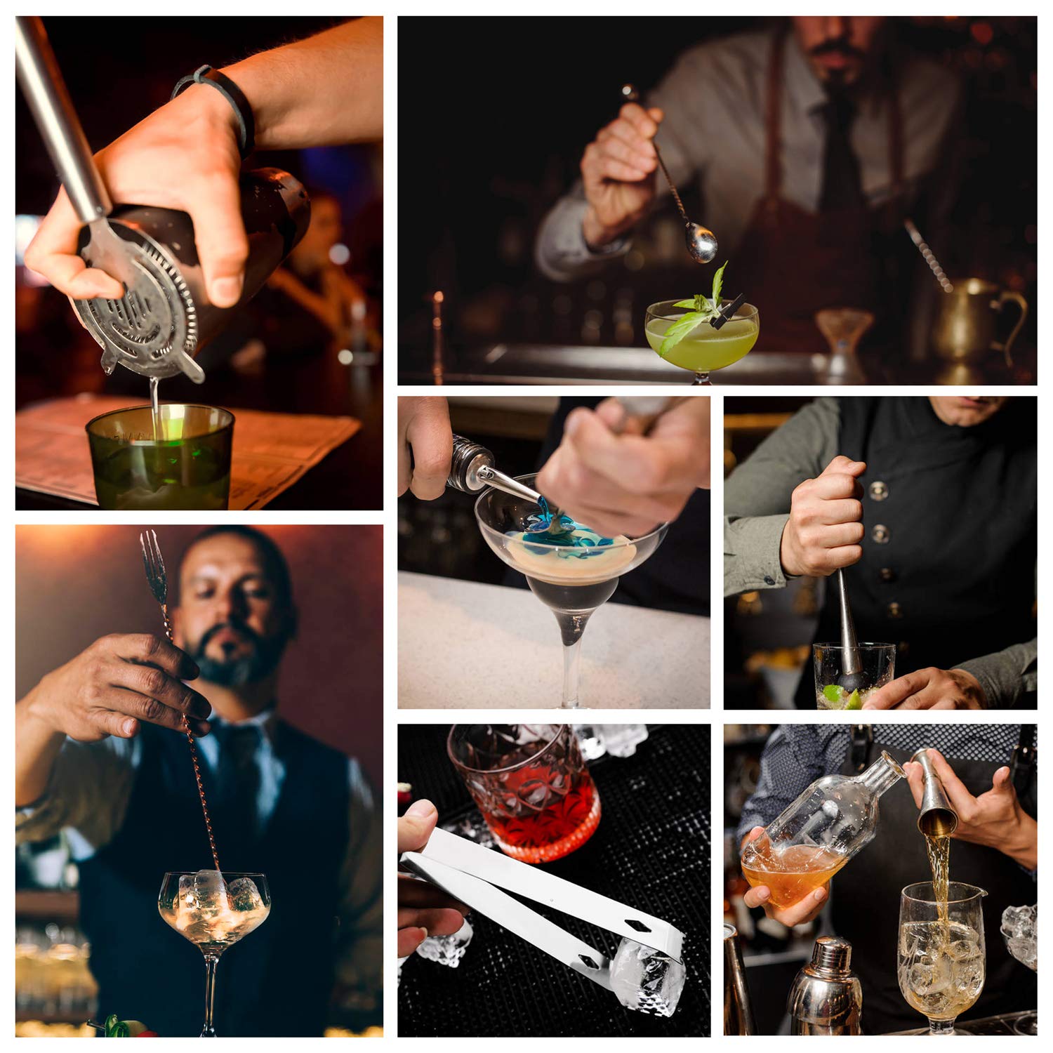 - 【Premium Bartender Kit】: You can create mixing drinks that made from a wide variety of liquors with this professional stainless steel cocktail shaker, including Frozen Blue Margarita, Margarita, Tequila Sunrise, Pink Lady, Singapore Sling, Mojito,Martini, Whiskey, Scotch, Vodka, Gin, Rum, Sake and more. You can use it for mixing any kind of drinks you want.