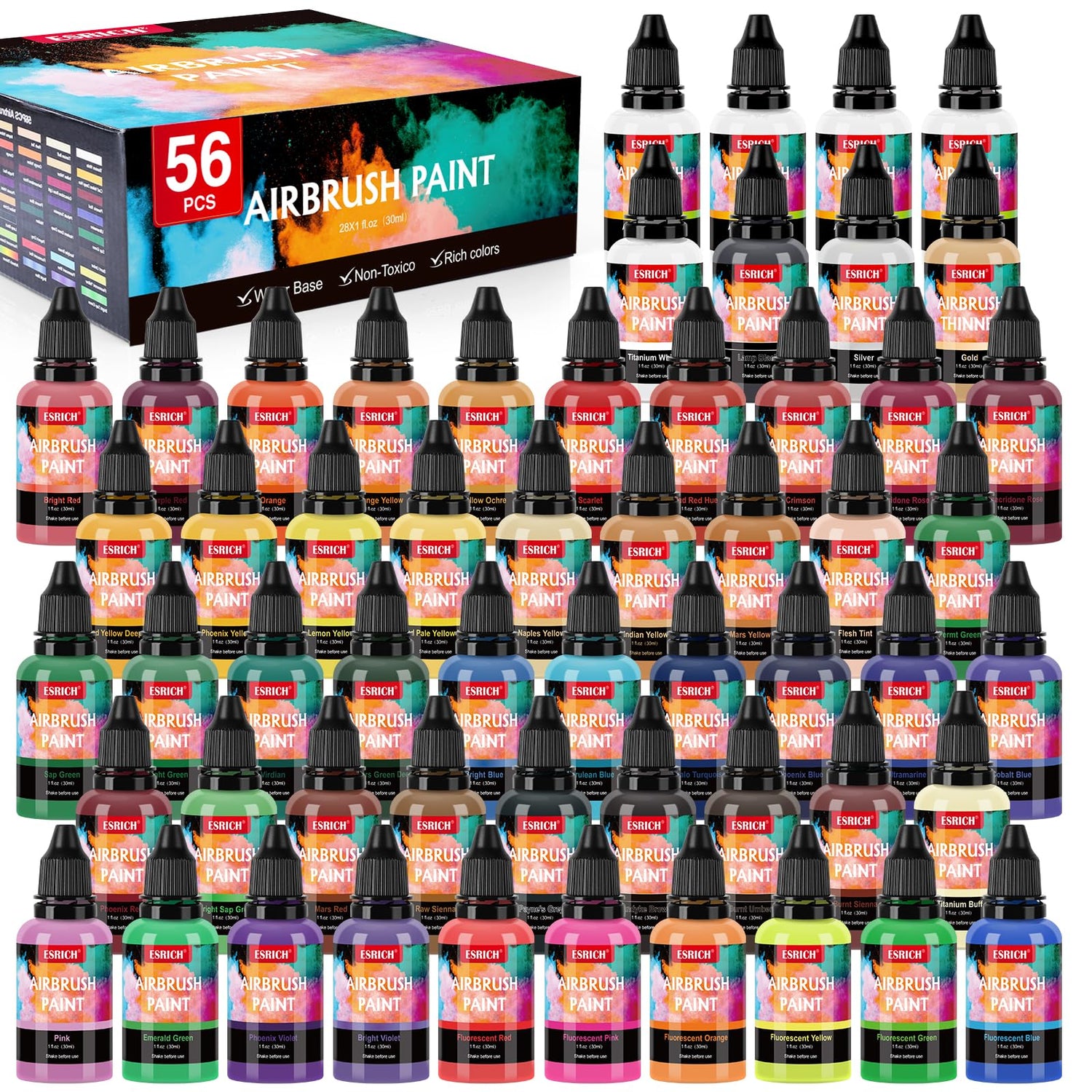 ESRICH Airbrush Paint 52 Colors (1 oz) with 4 Thinner,Air Brush Painting Set Acrylic Ready to Spray, Air Brushes Paint,Water-Based Airbrush Paint Set for Metal,Plastic,Canvas,Wood,Air brush Paint Kit