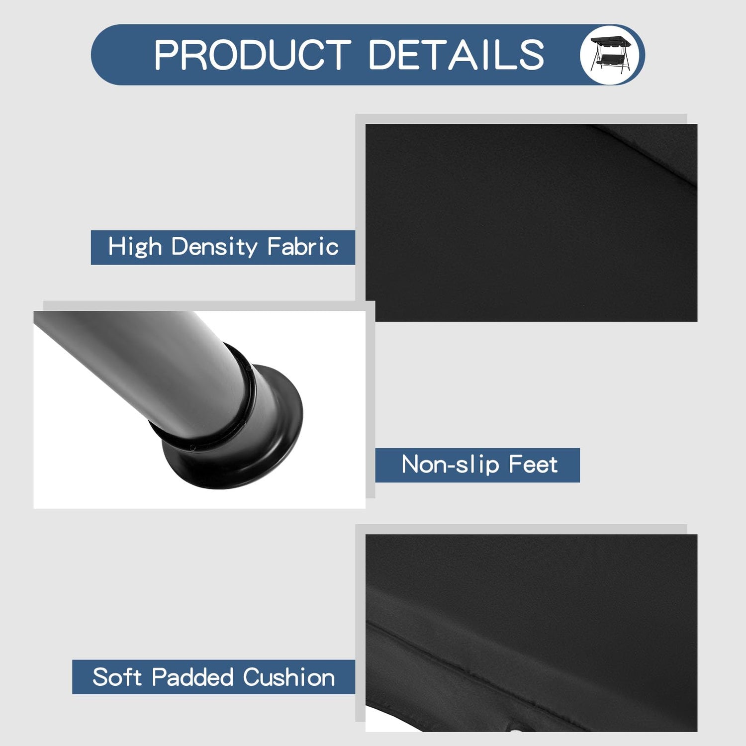 - 【FEET PADS】The backyard swings for adults constructs plastic anti-skid feet pads. It makes the swing bench more safe and also prevent floor from scratching. Swing sets for backyard for the perfect outdoor lounging experience.
