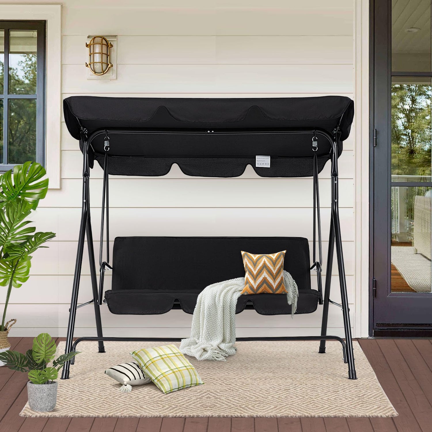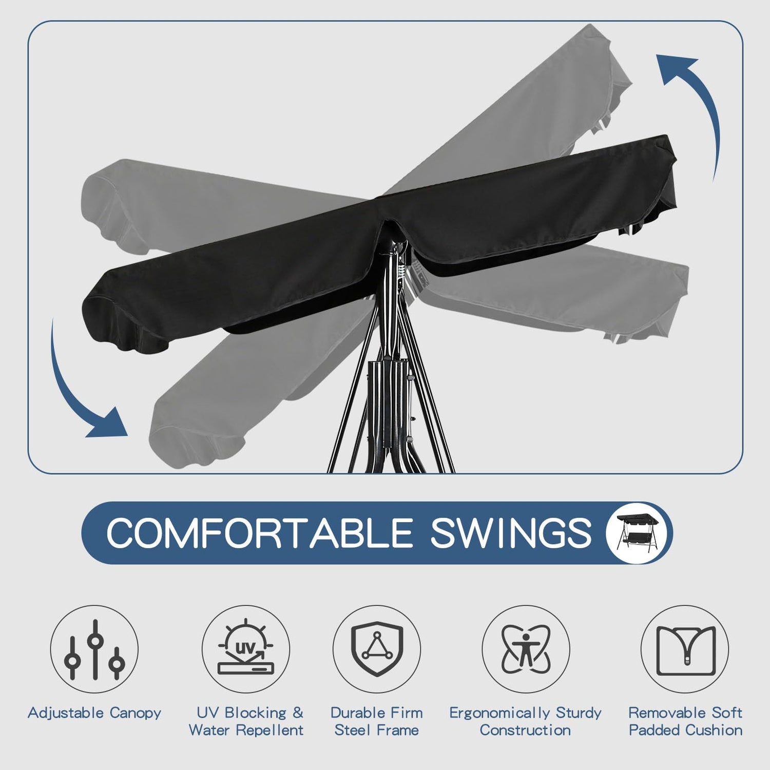 - 【ADJUSTABLE CANOPY】Our porch swing has adjustable canopy that can be set at various angles to provide optimal shade. The canopy swing against the wind and rain and dust, protect against UV.