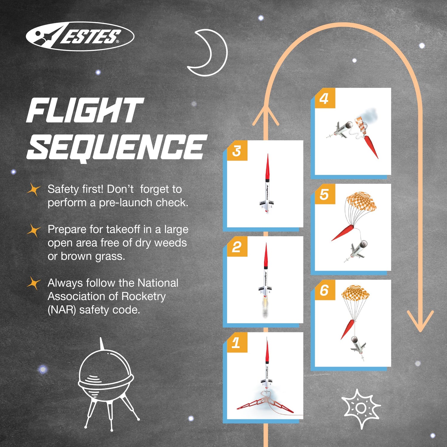 - SAFETY FIRST, FUN ALWAYS: Our rockets are designed to be used with the NAR (National Association of Rocketry) model-rocket safety code. Always ensure you have an appropriate launch site, stand back at least 15 ft., insert the safety key, issue a countdown, and then you can let your rocket fly!