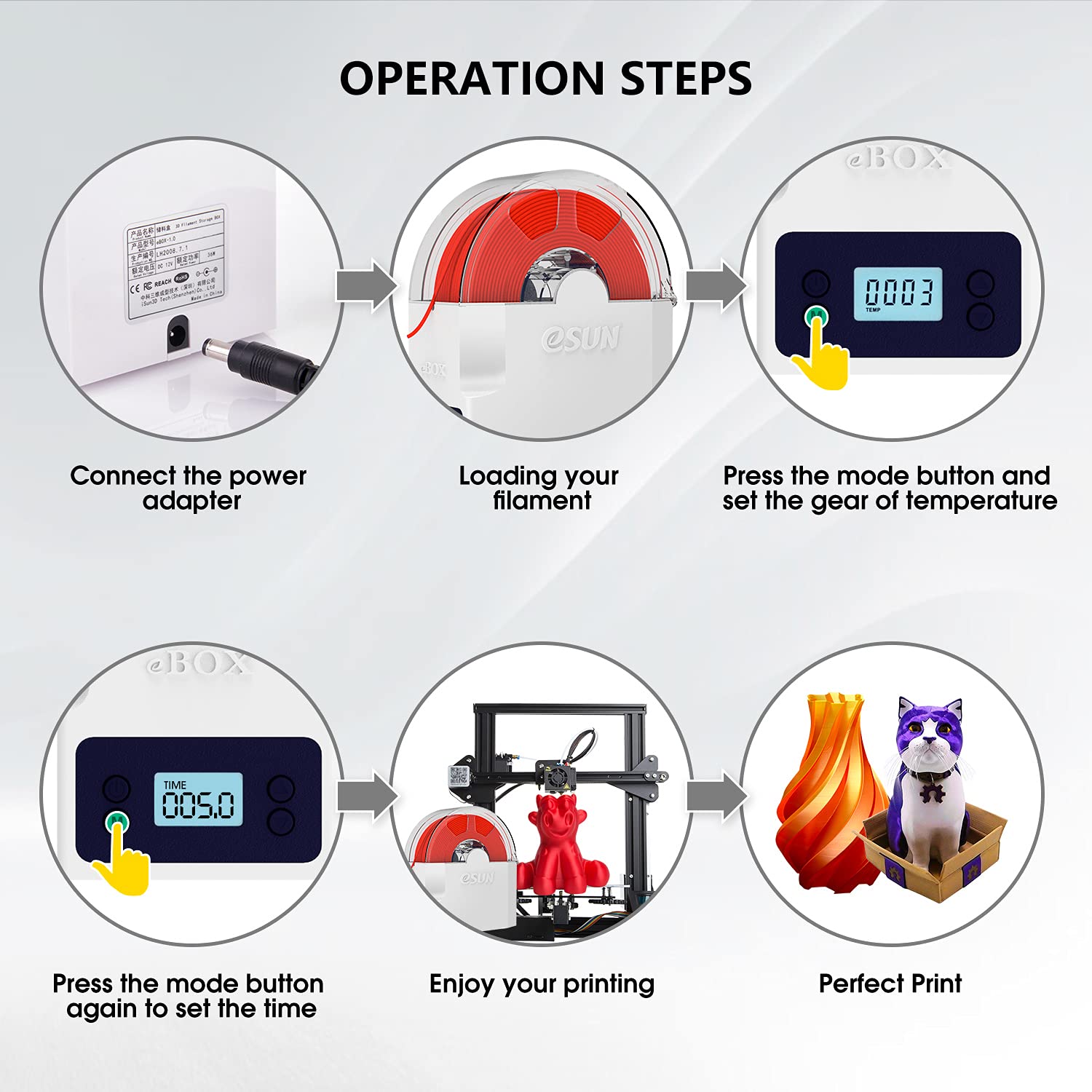 - 【Upgraded eBOX Lite Dryer Box】Moisture can cause printing failure, our eBOX Lite dry box is designed to keep filament in constant temperature and humidity, especially for those hygroscopic filaments. It can remove the excess moisture, keep the filament dry.