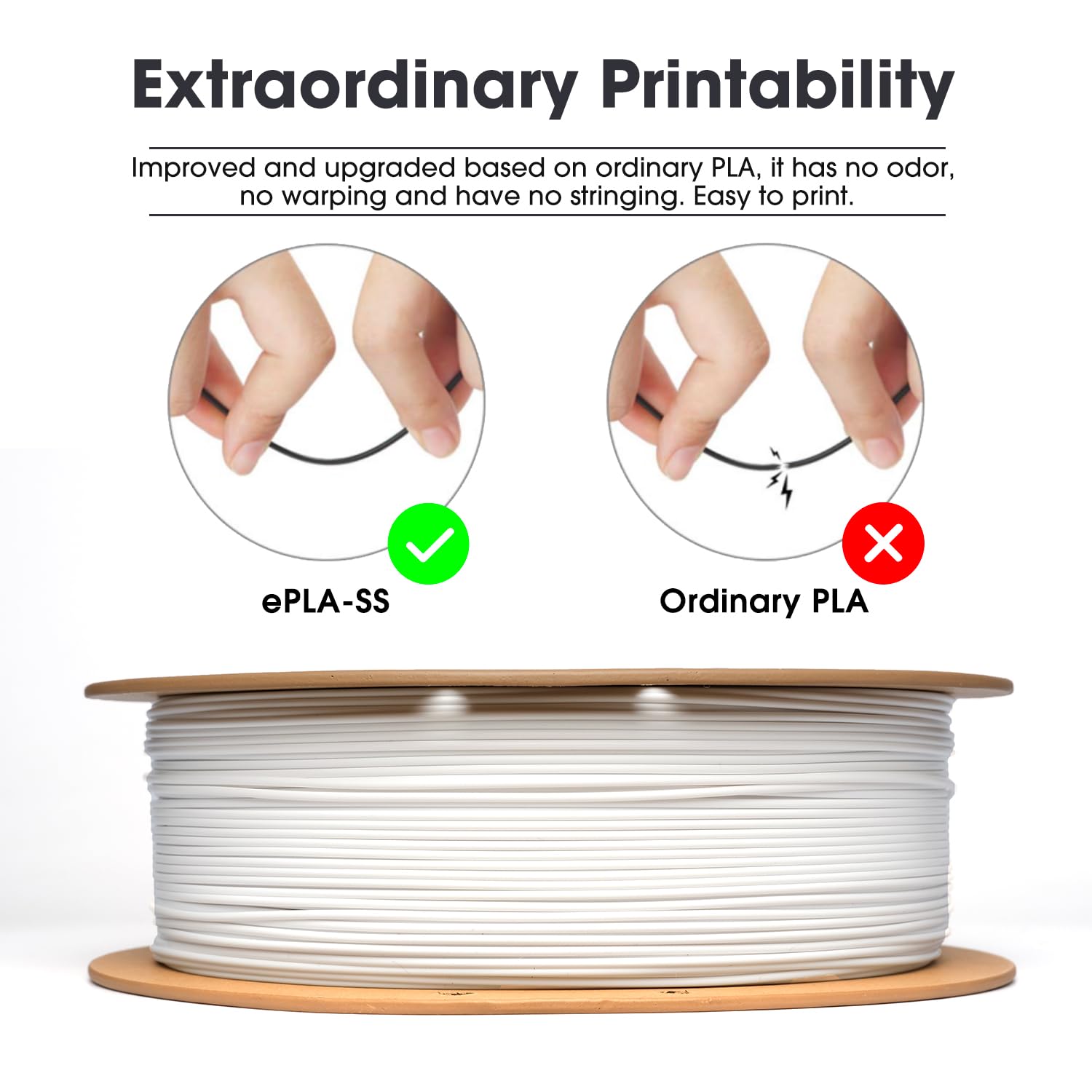 Improved and upgraded based on ordinary PLA (Polylactic Acid), eSUN fast printing speedy PLA keeping all the advantages of PLA, easy to print just like ordinary PLA.