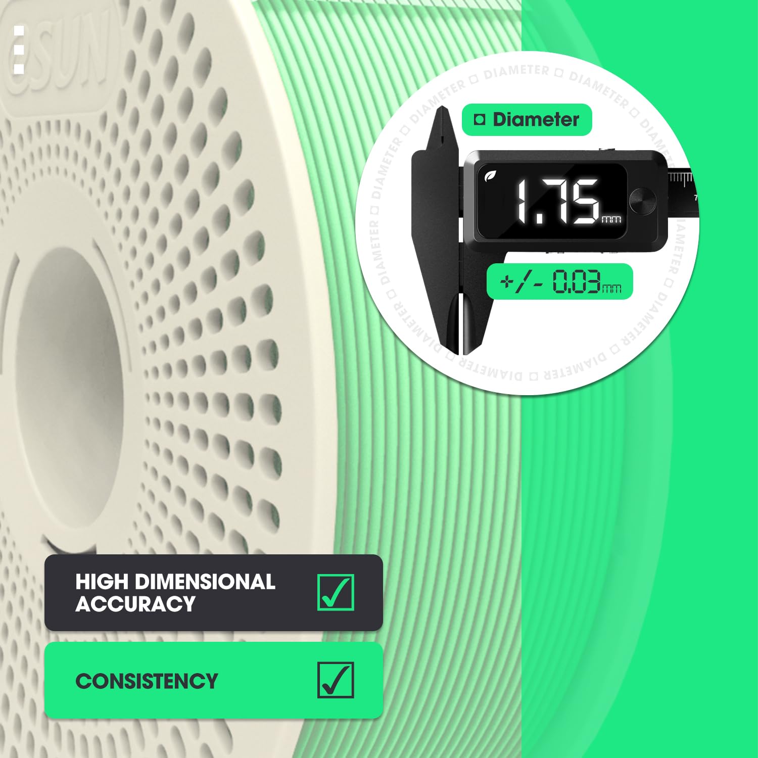 - PLA Filament 1.75 mm: Dimensional Tolerance +/- 0.03mm. Minimum tolerance and low warping to ensure consistent feeding and stable prints, no bubbles, less stringing, extremely high successful rate