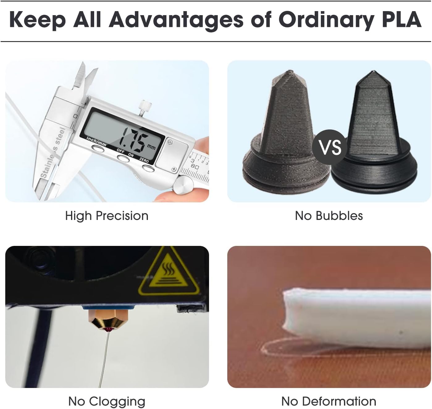 - 【 Easy to Print】PLA+ is an enhanced version of ordinary PLA. It has higher strength and better toughness, not easy to break. low shrinkage, no deformation, no cracking, high printing precision. Made with starch raw materials derived from plant resources, ideal for indoor printing.