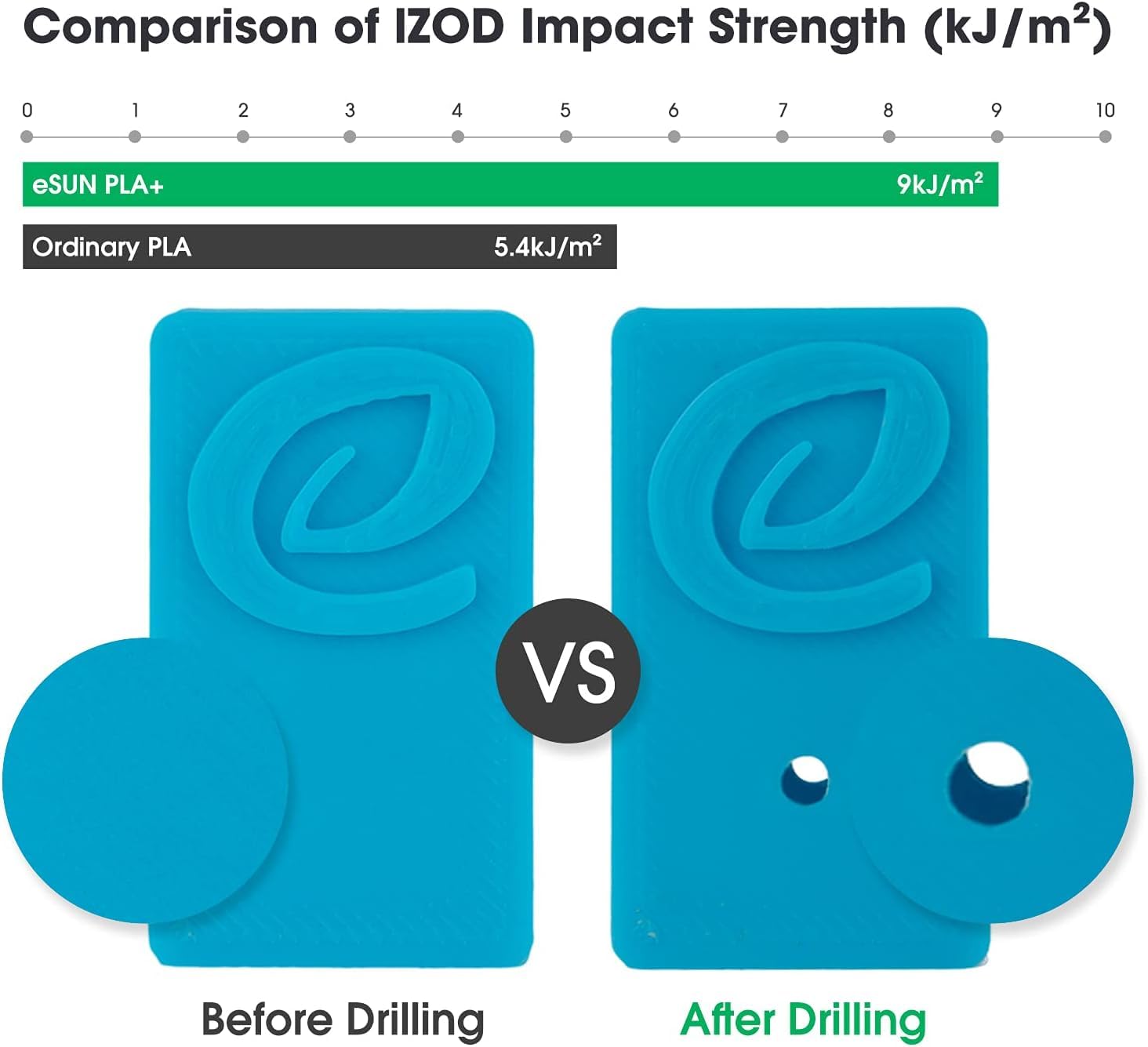 - 【Dimensional Tolerance +/- 0.03mm】eSUN PLA+ 3D printer filaments are produced with more precise specification. Minimum tolerance and low warping to ensure consistent feeding and stable prints, no bubbles, less stringing, extremely high successful rate.