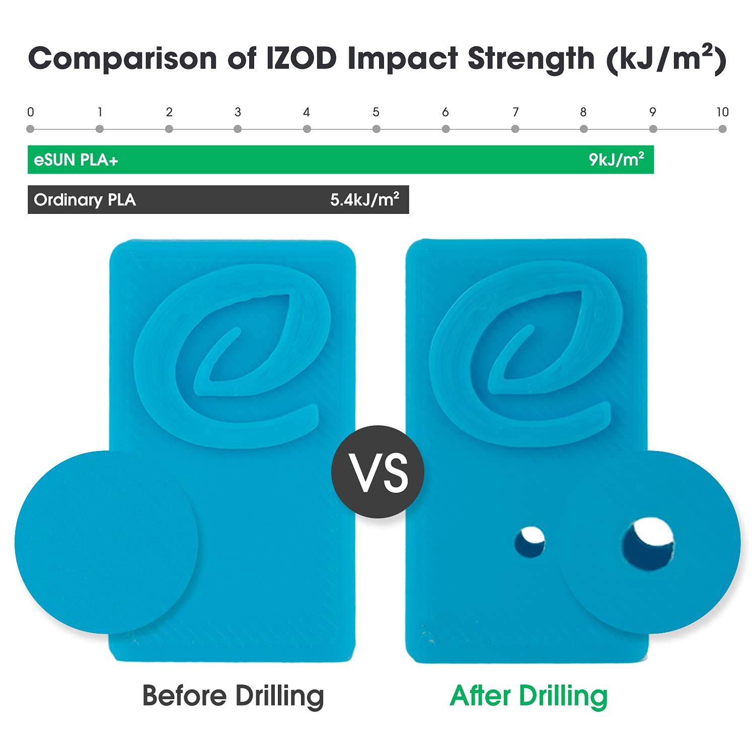 - 【Dimensional Tolerance +/- 0.03mm】eSUN PLA+ 3D printer filaments are produced with more precise specification. Minimum tolerance and low warping to ensure consistent feeding and stable prints, no bubbles, less stringing, extremely high successful rate.