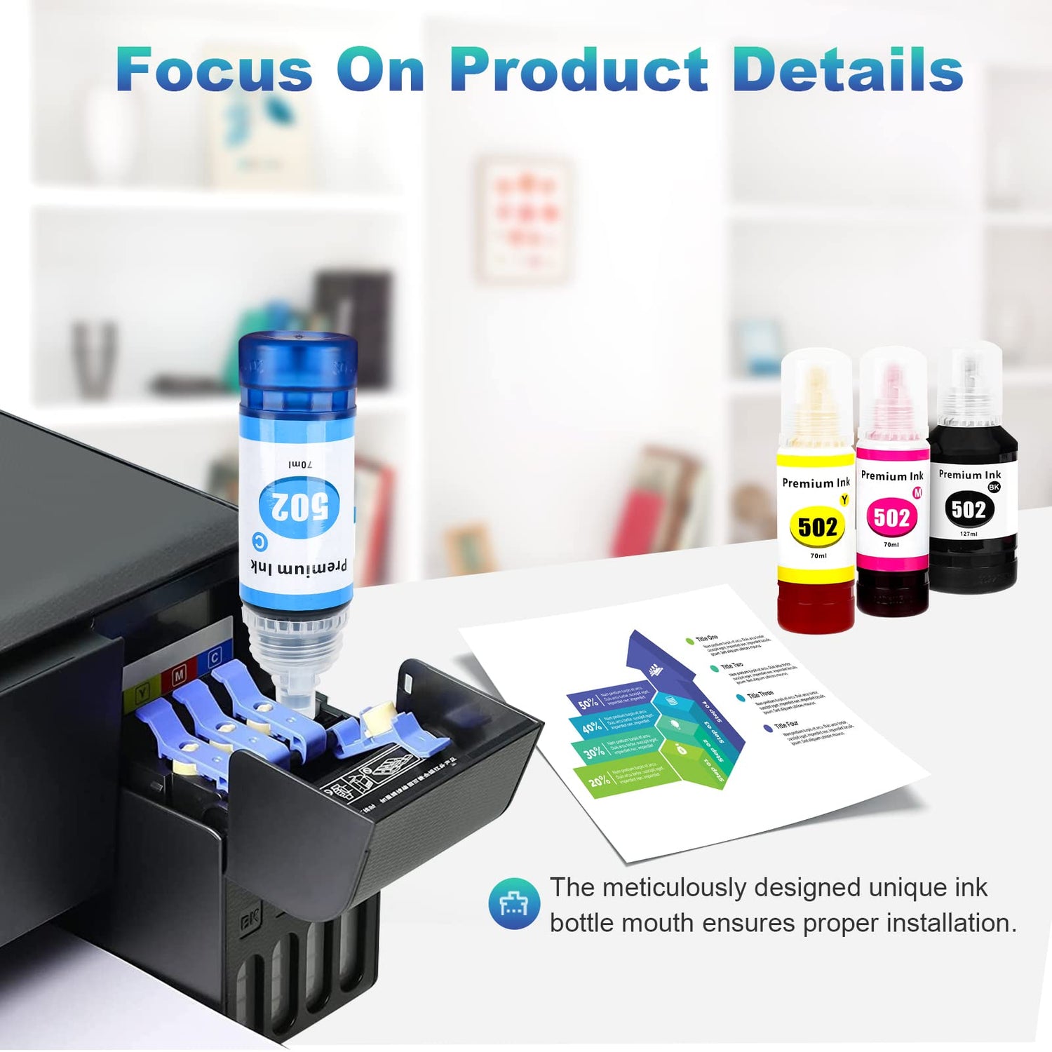 - Excellent Print Quality:The epson 502 ink bottles are produced using eco-friendly materials and is perfect for printing clear text, graphics,and images without fading,stripes,or spots,making it ideal for home and office use,for epson et-4760 ink.